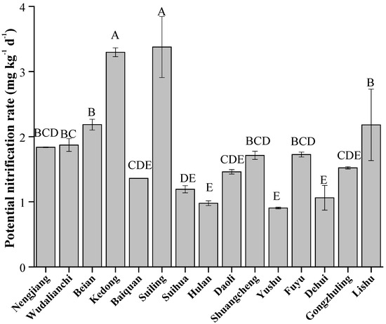 Soil potential nitrification rate in Typical Black Soil Zone. The letters represent significant differences between samples (p < 0.05).