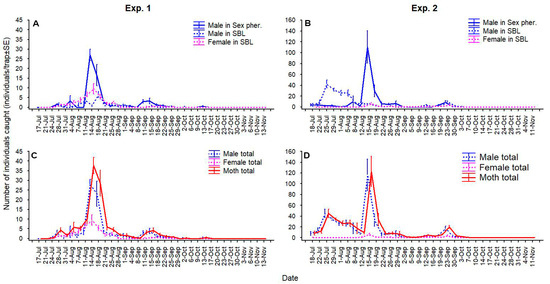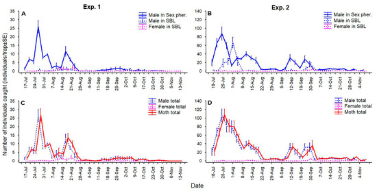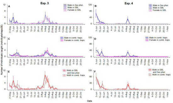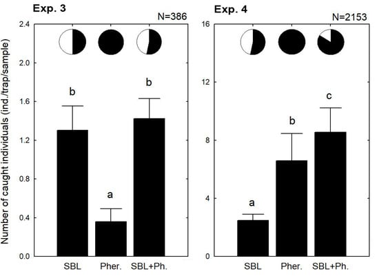 3.1. Parallel Use of Traps with Sex Pheromone and SBL