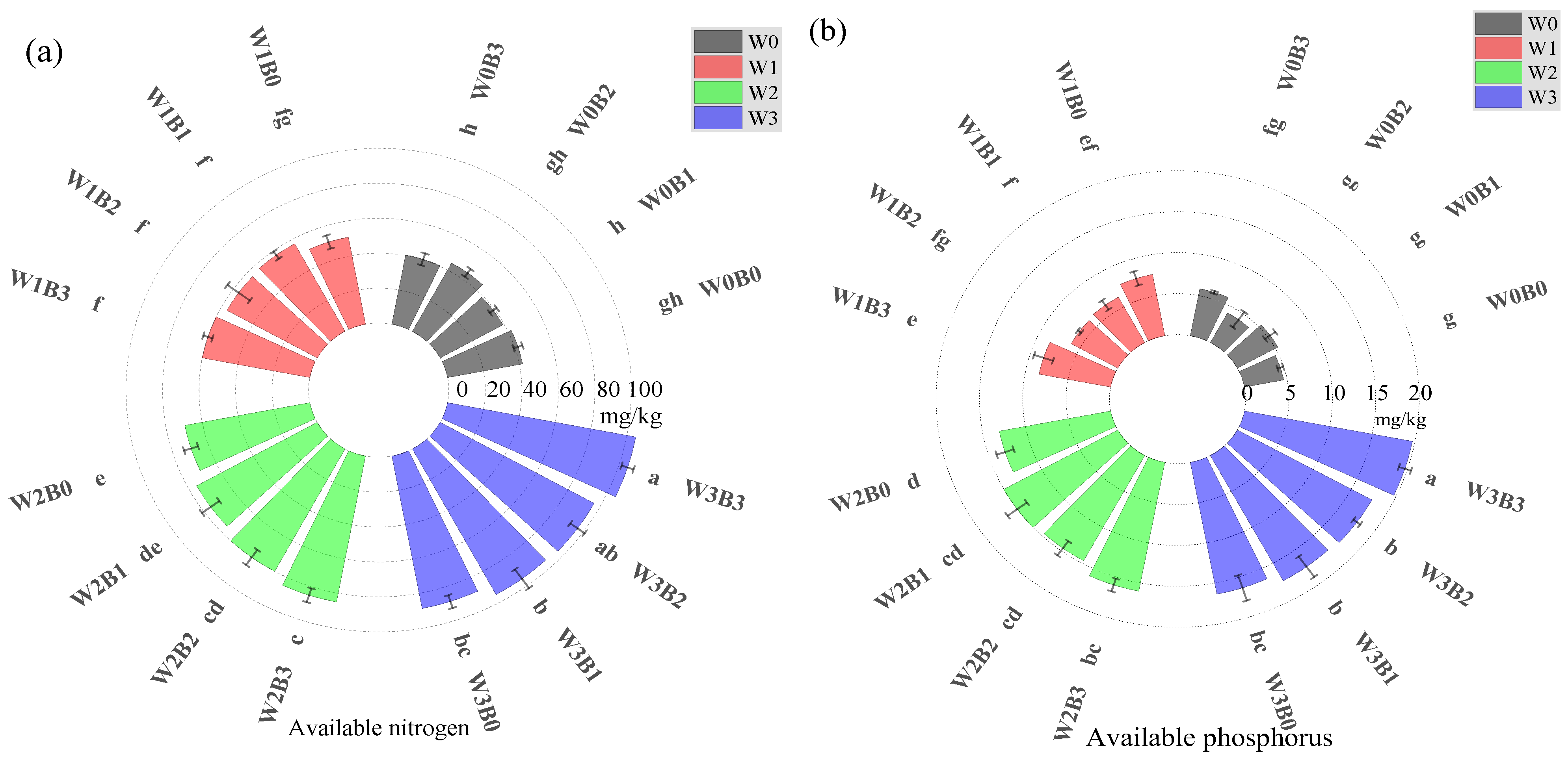 WR0.25 | B0 | 18.90 ± 1.33 hi | 22.24 ± 1.66 fg | 27.59 ± 1.08 de | 30.38 ± 1.27 c |