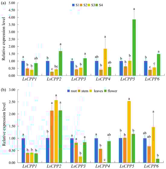 3.9. Expression Profiles Analysis of LsCPP Genes by qRT-PCR