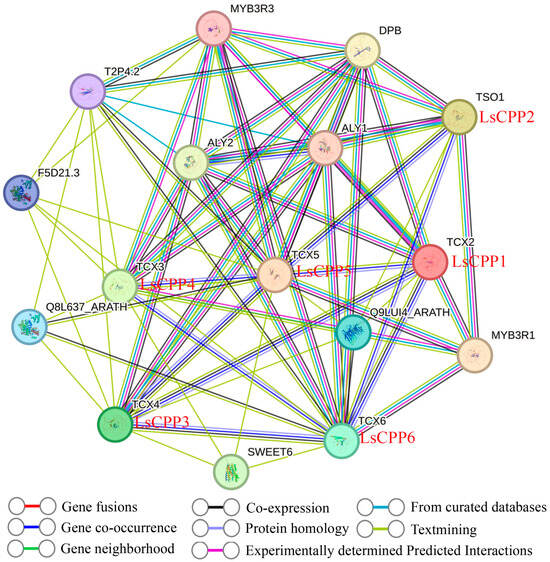 3.11. Protein–Protein Interaction (PPI) Network Analysis of LsCPP TFs