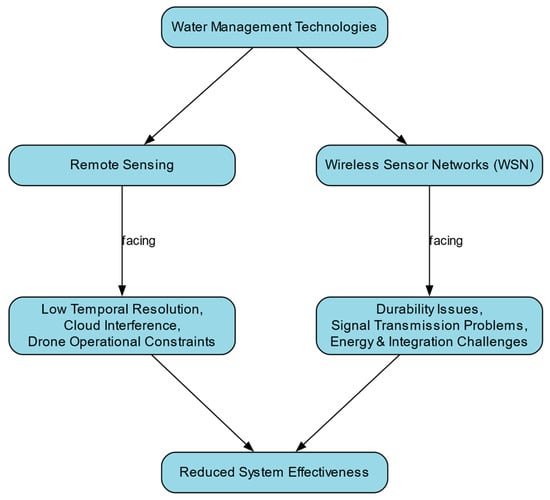The advantages of these integrated systems lie in their ability to overcome the limitations of individual technologies. RS alone lacks temporal resolution; weather data may be too generalized for large fields; and WSNs, while precise, are limited in spatial scope [175]. Integration bridges these gaps, providing a comprehensive understanding of plant-water dynamics across multiple scales. This results in better identification of stressed areas, optimized irrigation planning, and reduced water waste—key components of sustainable agriculture.