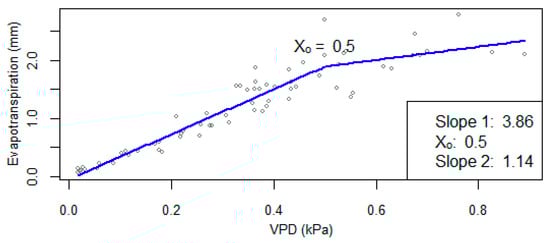 A breakpoint in the data used for model calibration (year 2 of the Shao et al. [11] dataset), between VPD and evapotranspiration existed at Xo = 0.5.