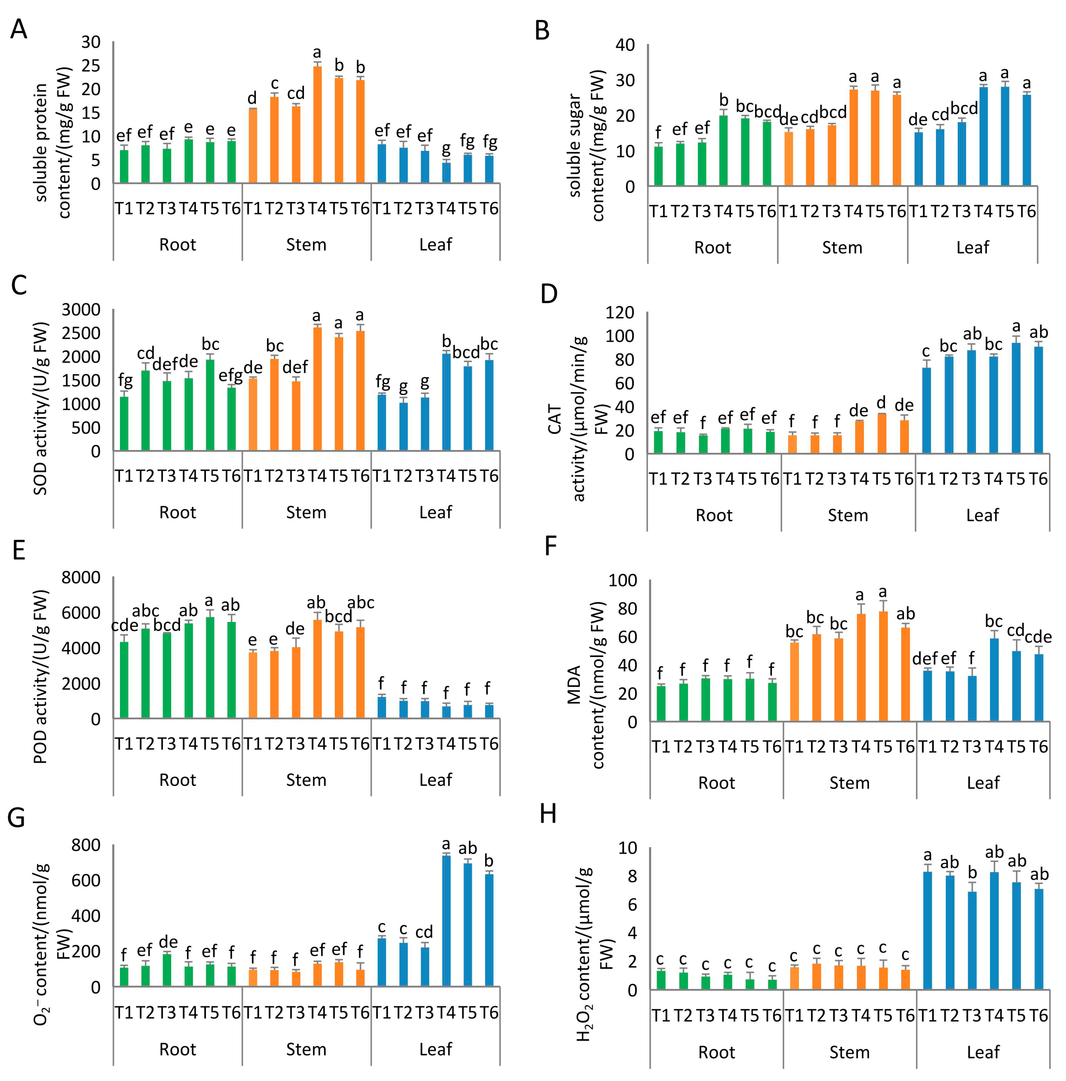 LeafT112.98 ± 0.65 a2.83 ± 0.08 a21.82 ± 0.45 ef