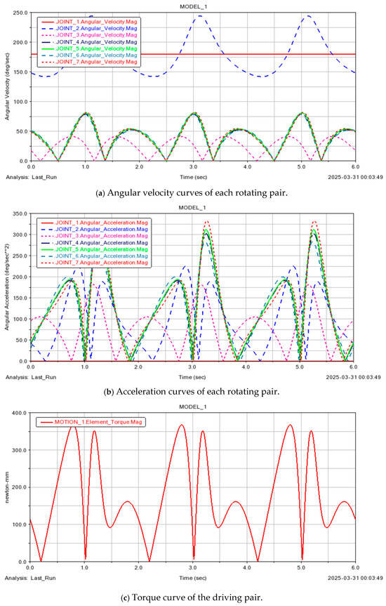 Figure 9. Dynamics simulation result curves of swing-arm mechanism.