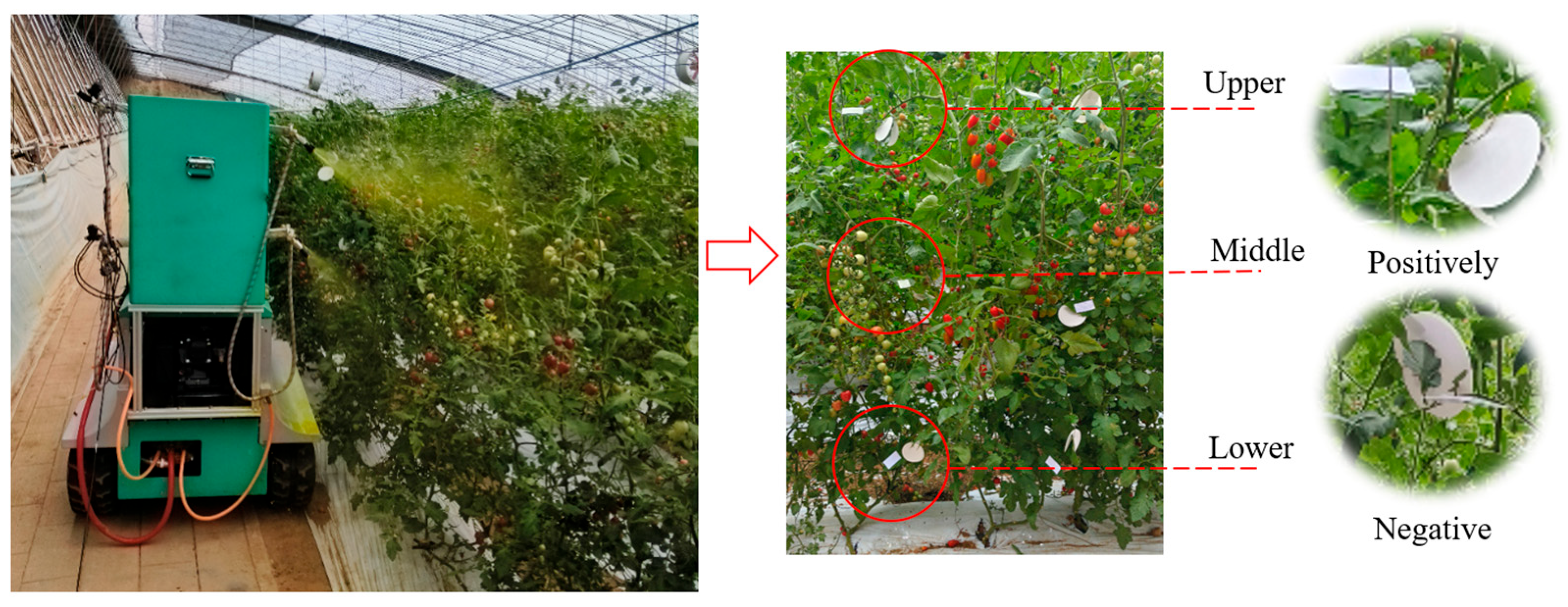 2.5. Experimental Design of Swing-Arm Sprayer on Greenhouse Tomatoes