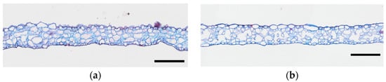Transverse sections of ginseng leaves grown under (a) in vitro and (b) ex vitro conditions. Scale bar = 200 μm.