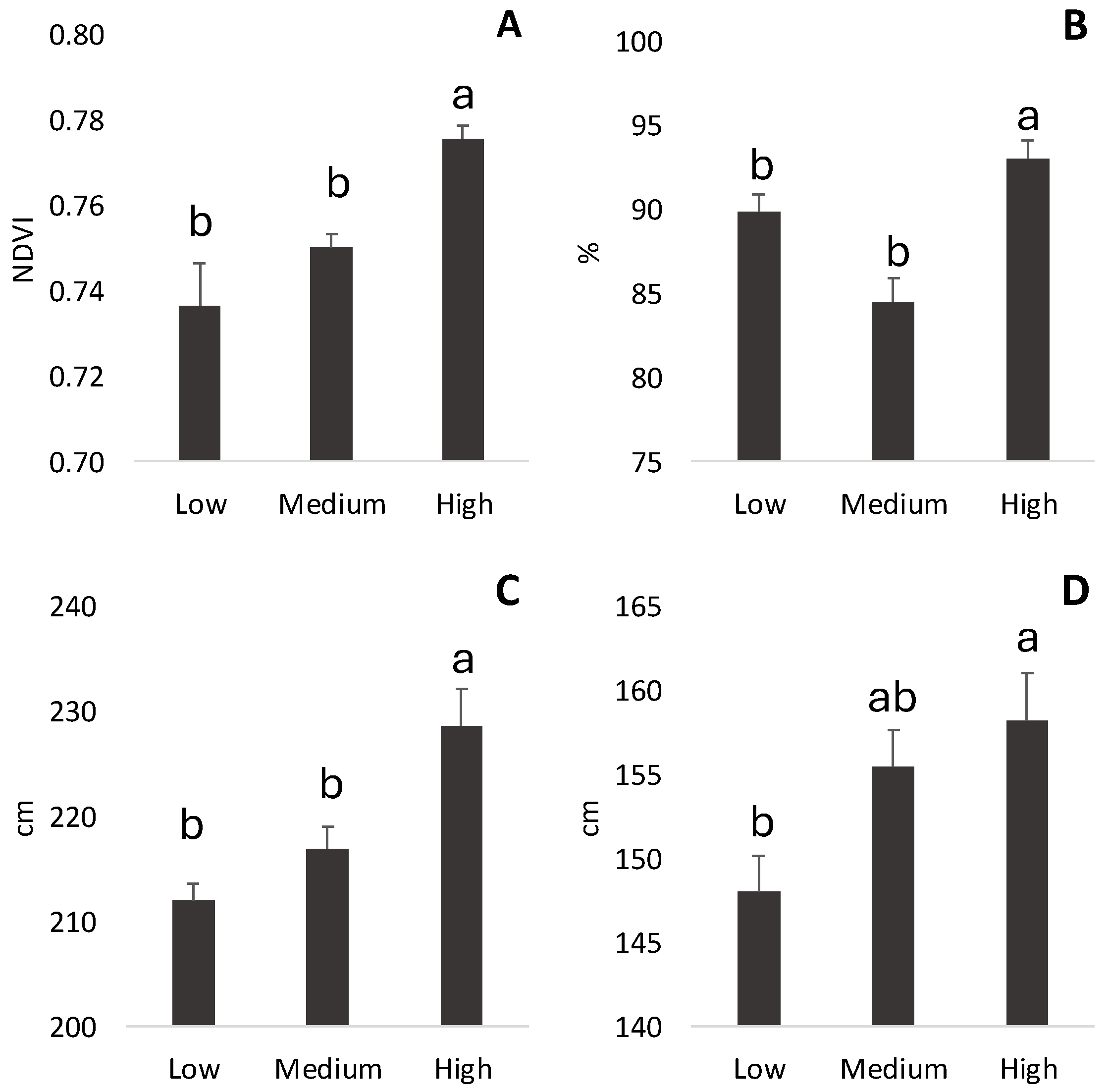3.2. NDVI-Based Vigor and Canopy Assessment