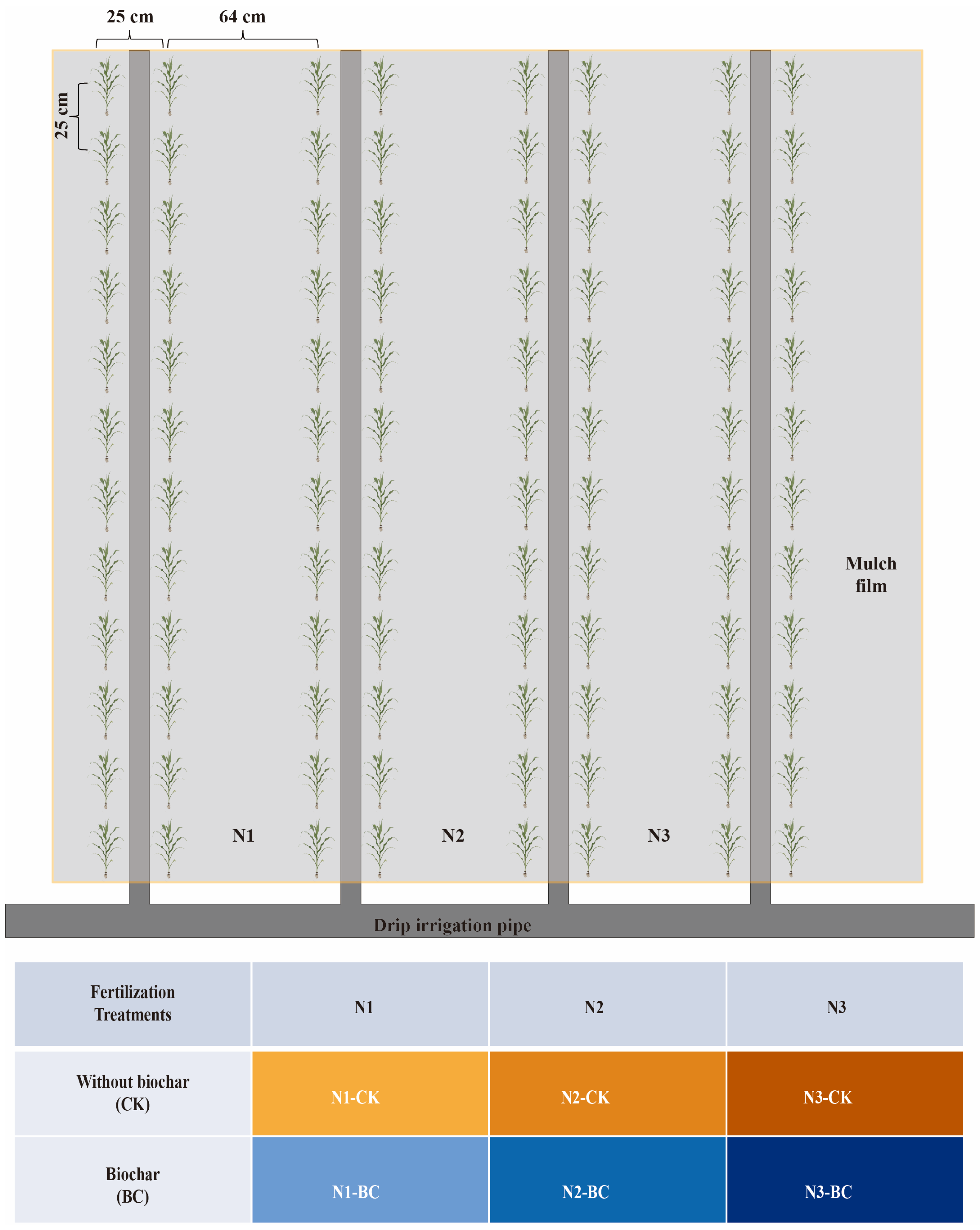 - Lu, Y.; Tan, Y.; Li, G.; Yan, L.; Zhu, Y.; Xie, Y.; Wang, B.; Zhang, H.; Jiang, Z. Nitrogen fertilizer reduction and biochar addition change the microbial carbon and nitrogen use efficiency of farmland soils in arid areas. J. Environ. Manag. 2025, 394, 127669. [Google Scholar] [CrossRef]