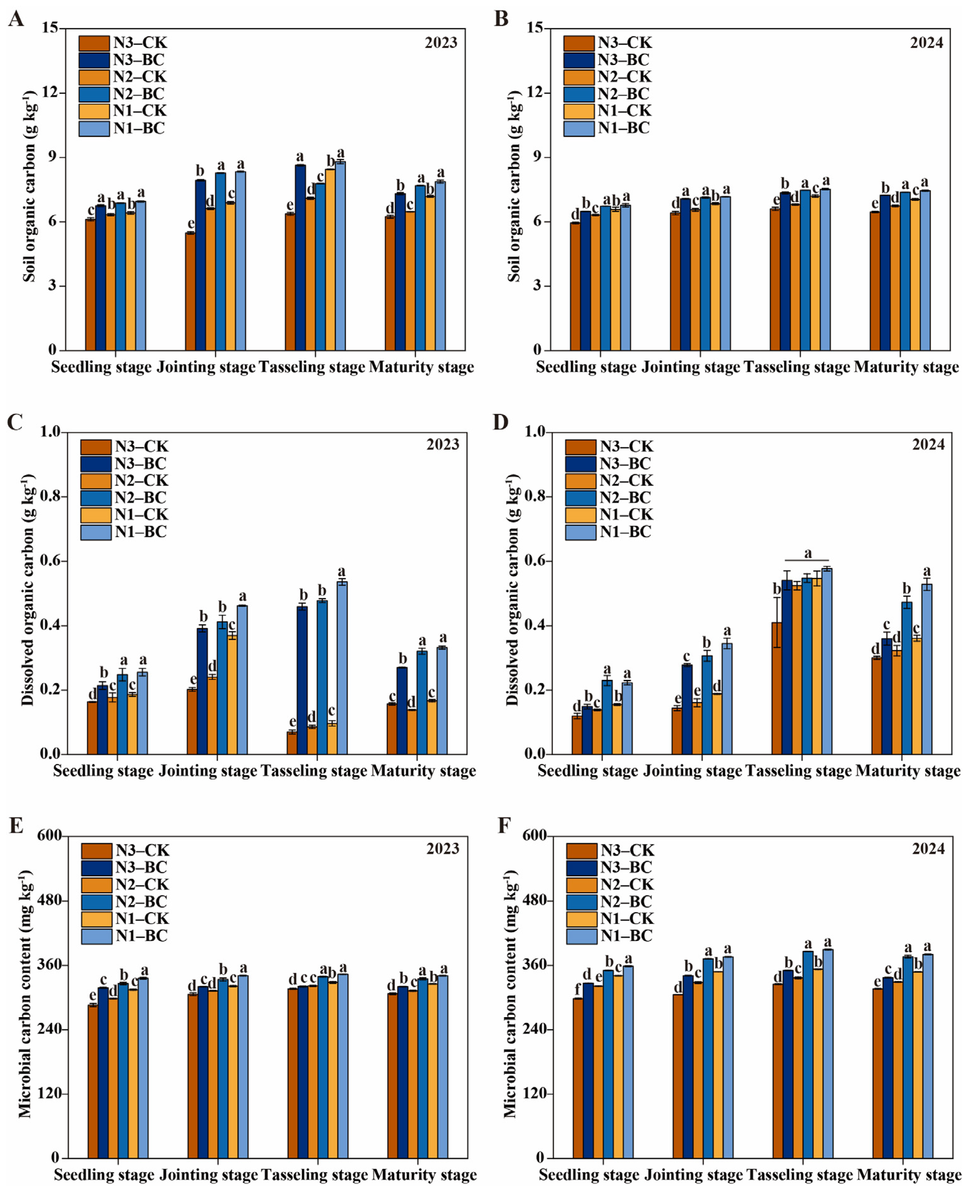 3.2. Effects of Biochar Addition on Carbon Pools in Surface Soil
