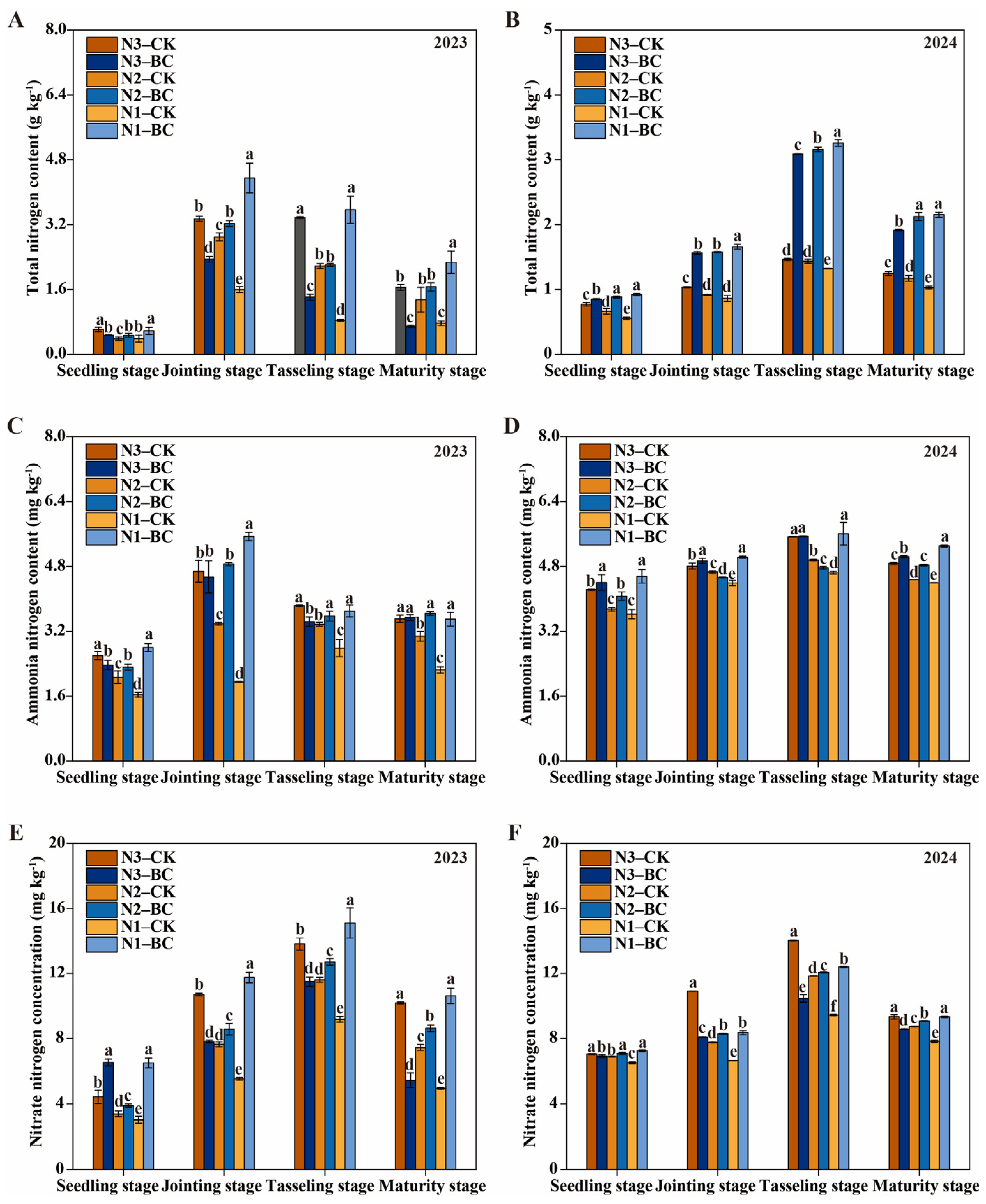 3.3. Effects of Biochar Addition on Nitrogen Availability in Surface Soil