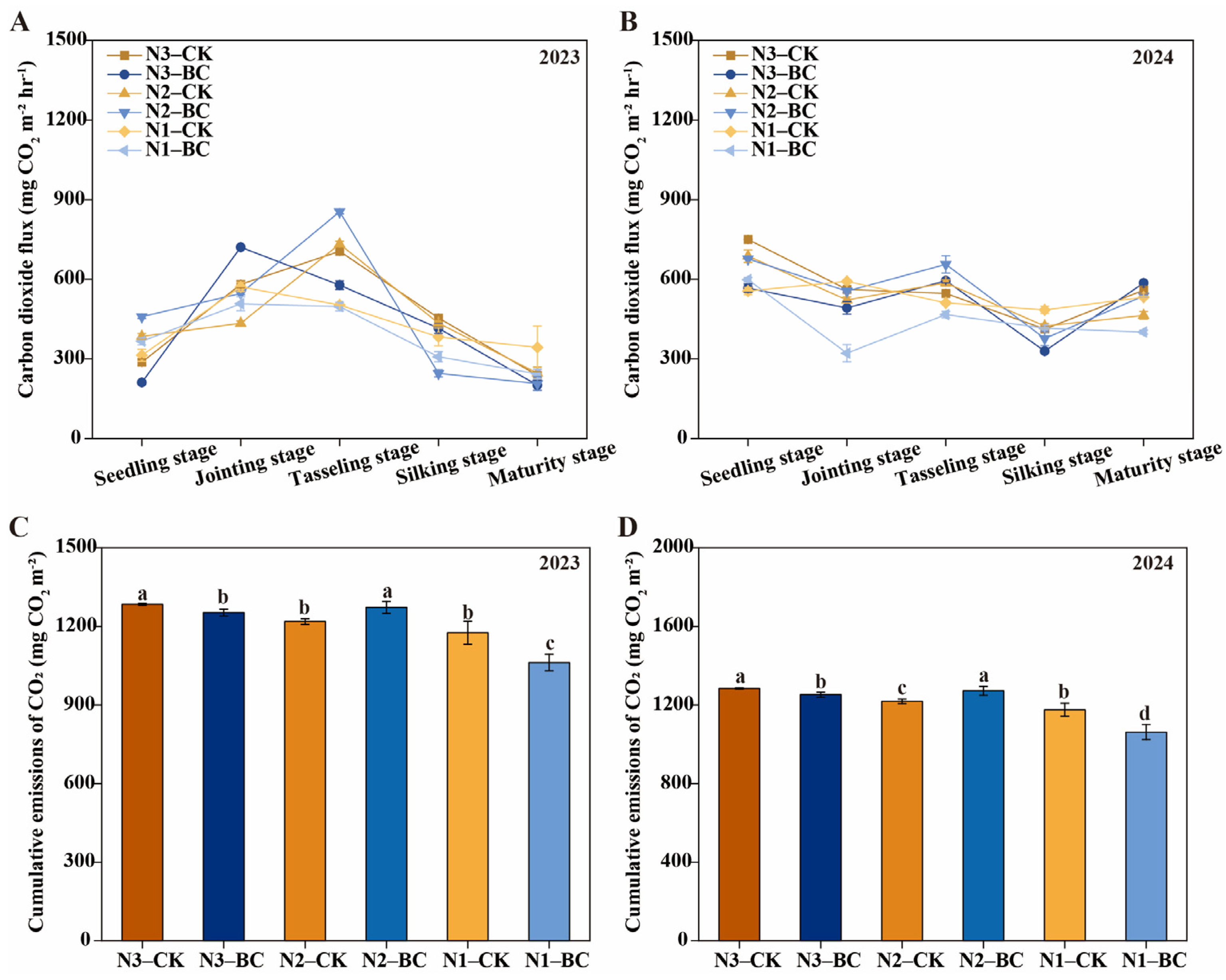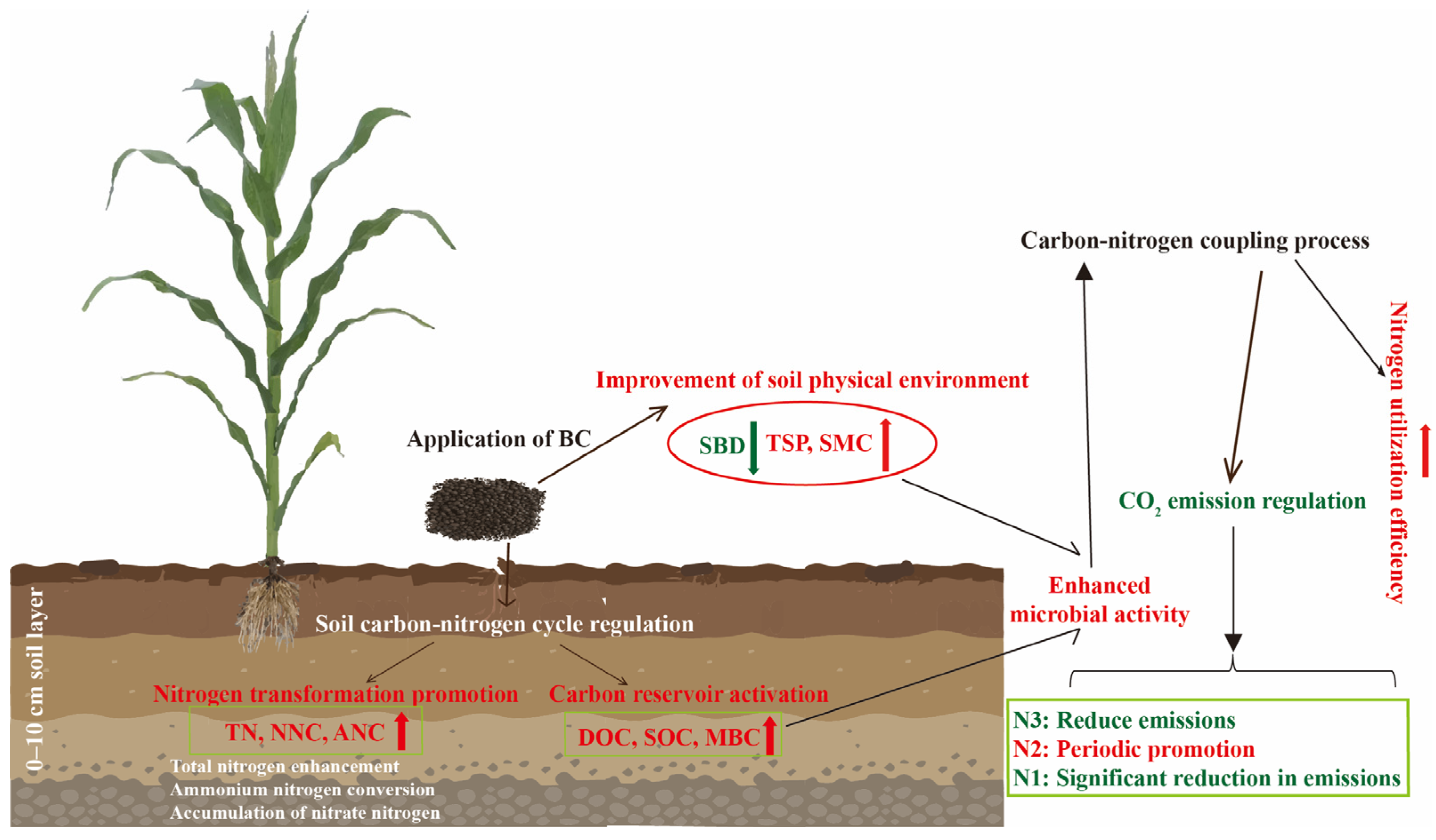 Jiang Z, Lu Y, Zhang H, Li G, Tan Y, Zhu Y, Xie Y, Wang B. Effects of Biochar Addition on Topsoil Carbon–Nitrogen Cycling and CO2 Emissions in Reduced-Nitrogen, Film-Mulched Drip-Irrigated Silage Maize Systems. Agronomy. 2026; 16(1):10. https://doi.org/10.3390/agronomy16010010