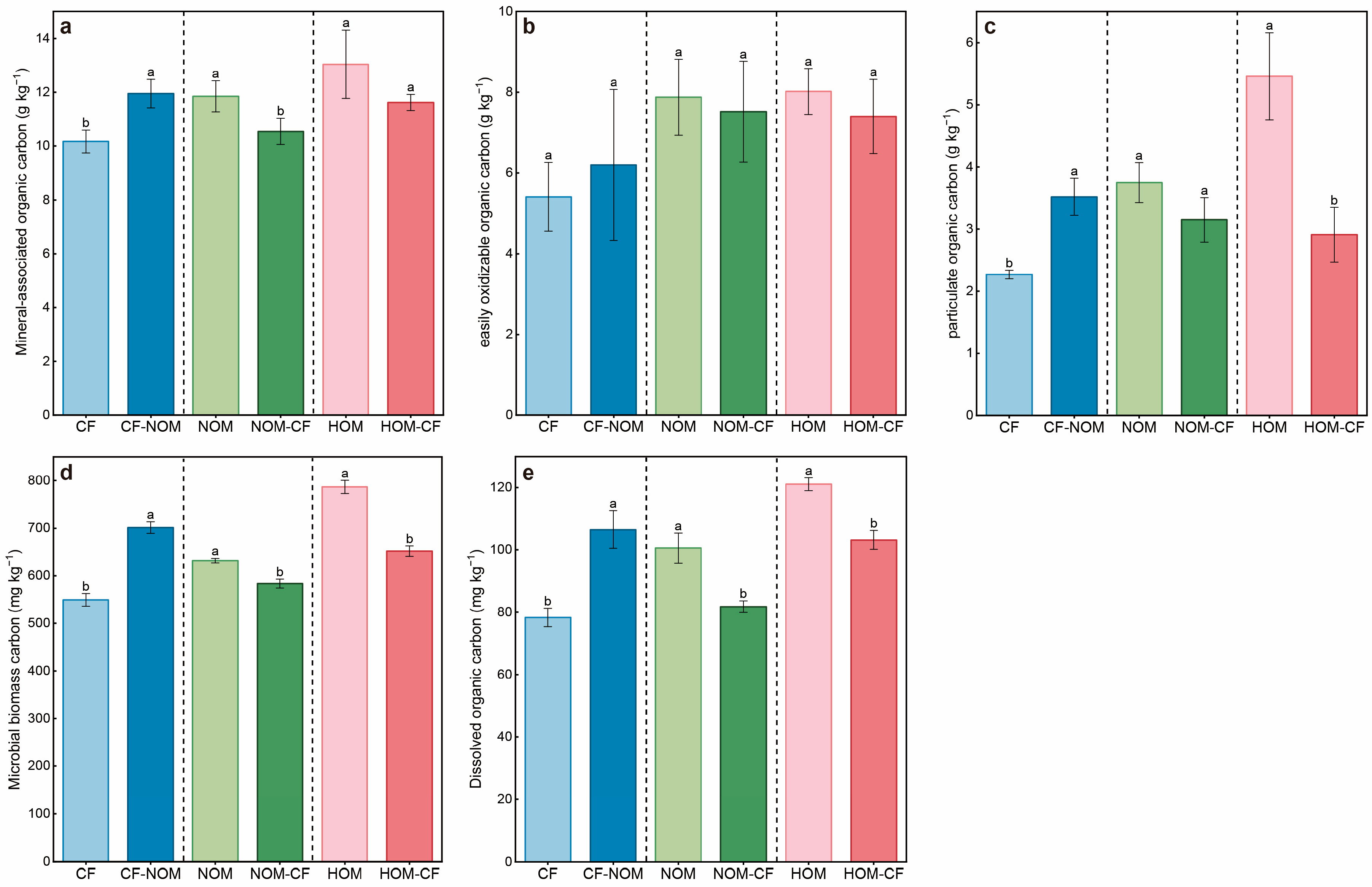 | NOM-CF | 5.10 ± 0.04 a | 1.01 ± 0.03 a | 13.70 ± 0.85 a | 1.55 ± 0.03 a | 12.06 ± 0.98 a | 0.62 ± 0.14 b | 26.20 ± 2.26 a | 150.00 ± 12.58 b |