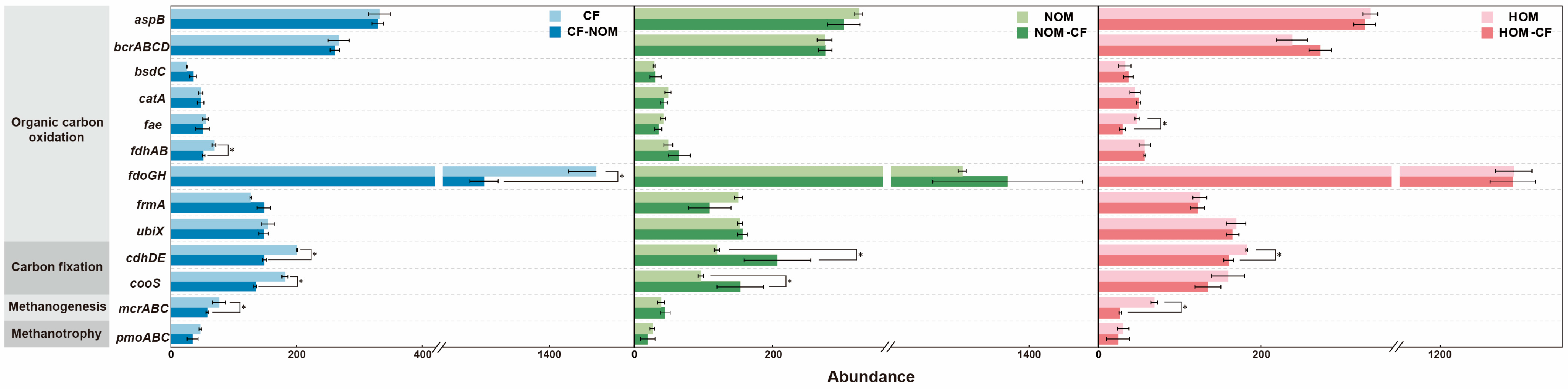 4.2. Effects of Fertilization Regime Shifts on Carbon Cycling Functional Genes in Paddy Soil