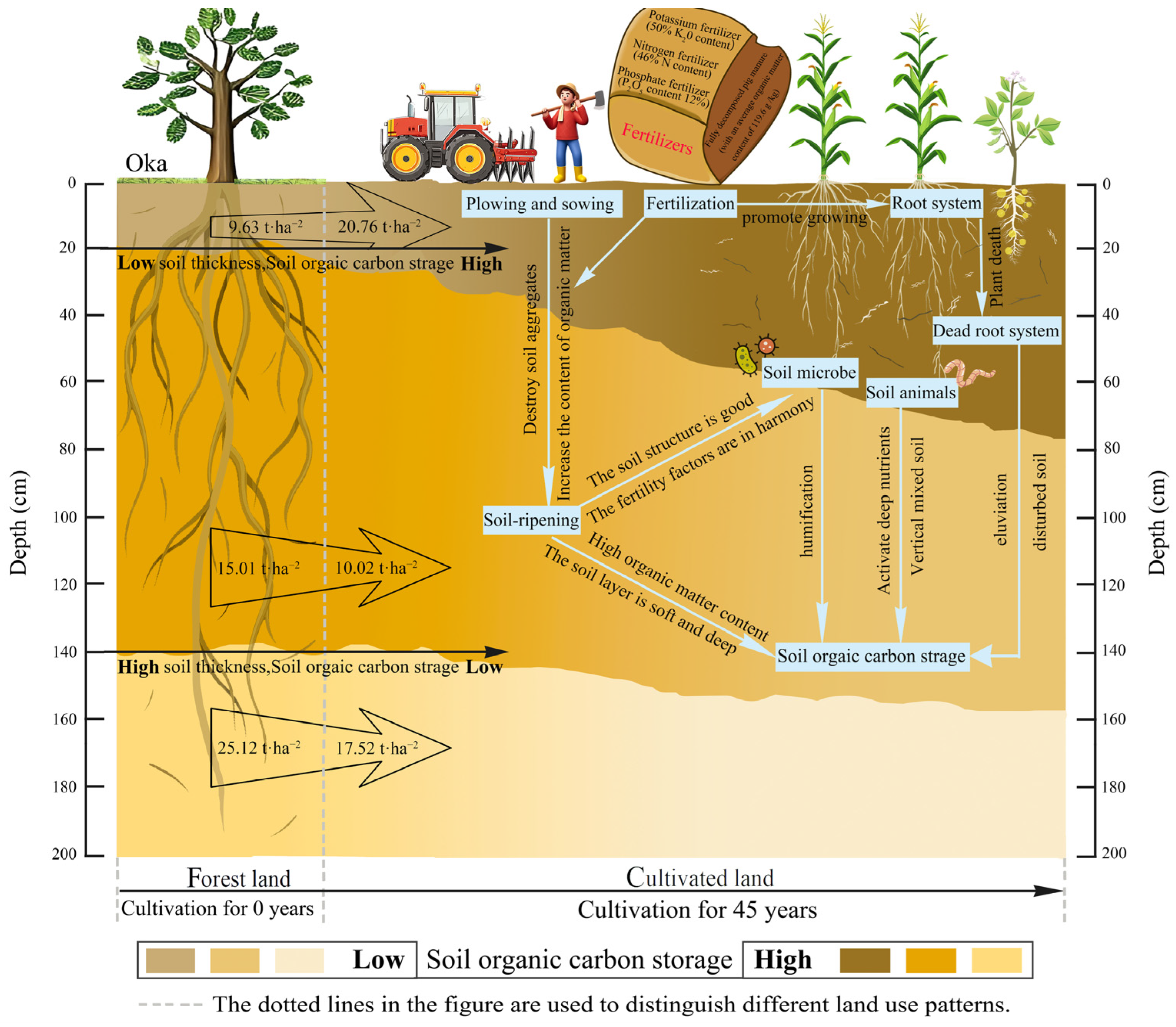 - Yu, X.; Zhou, W.J.; Cheng, P. Soil organic carbon fractions and 14C ages through 70 years of cropland cultivation. Soil Tillage Res. 2019, 195, 104415. [Google Scholar] [CrossRef]