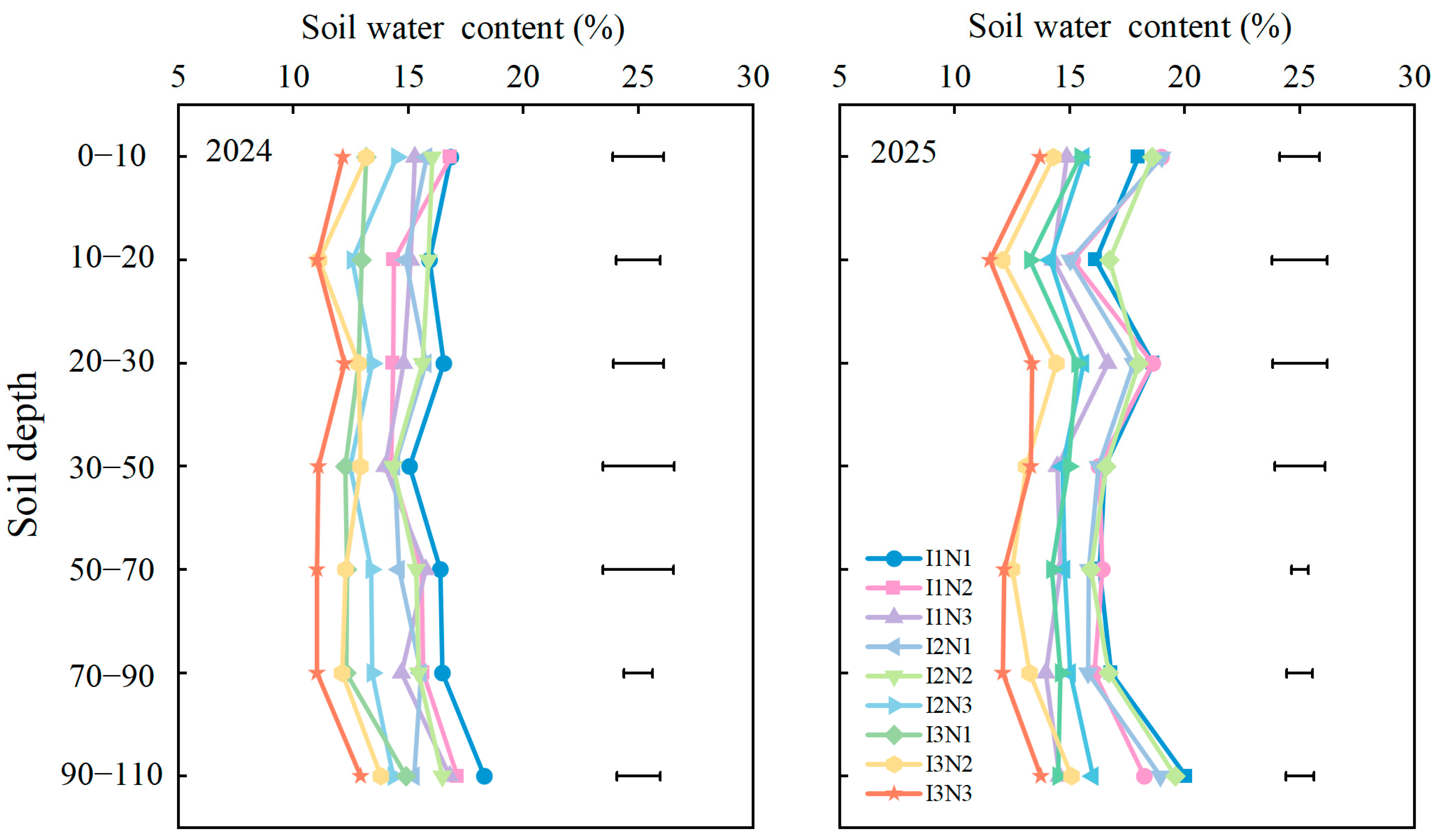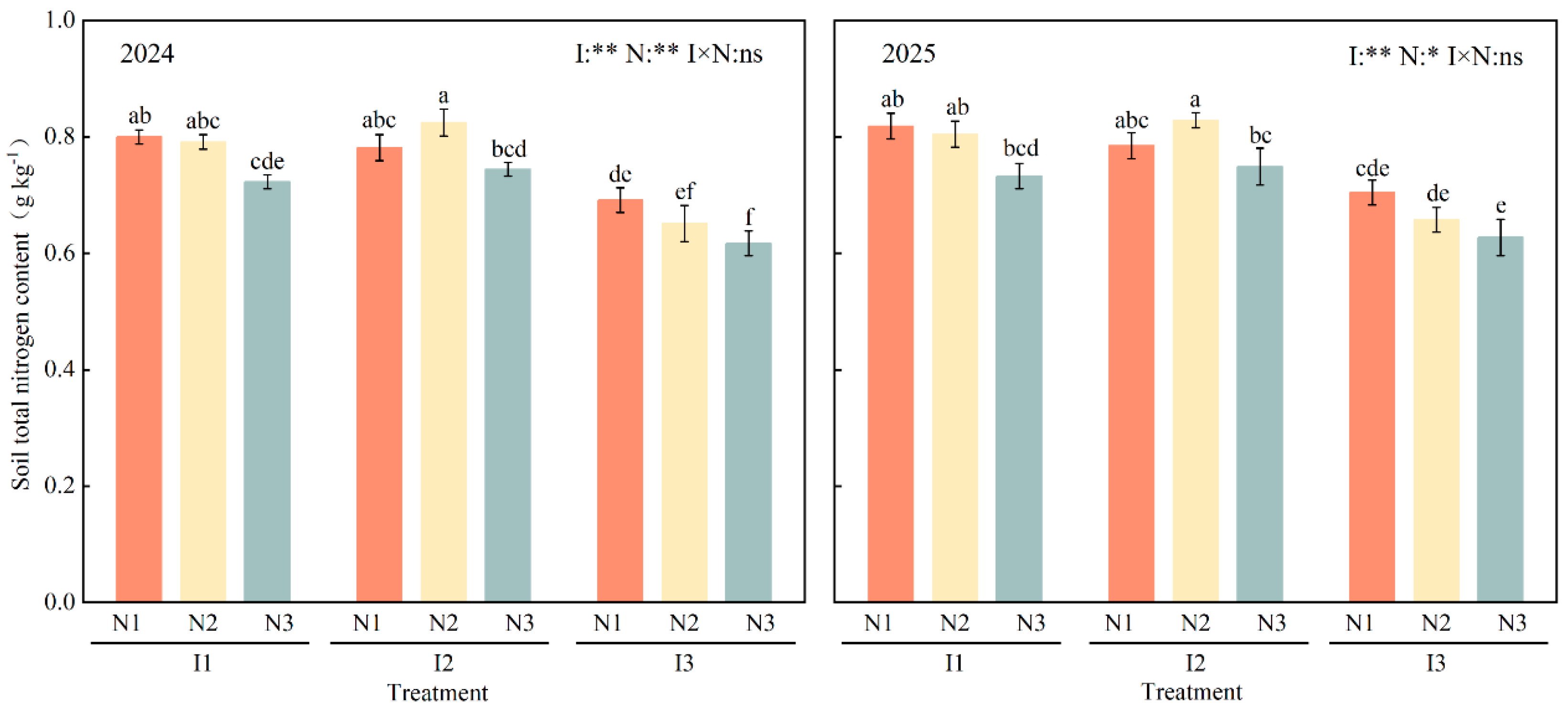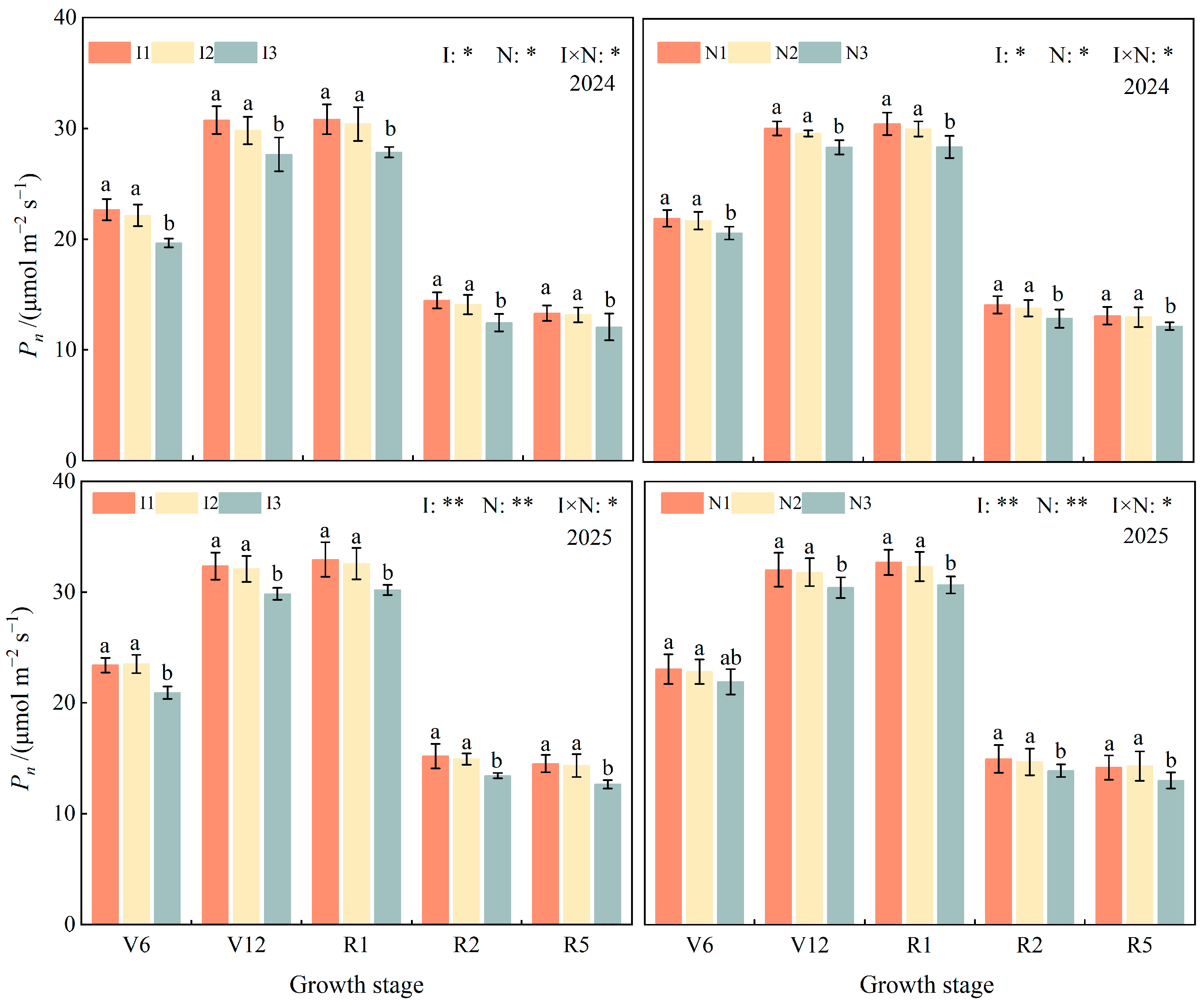 | I2N1 | 24.64 a | 33.99 ab | 24.98 a | 34.26 ab |