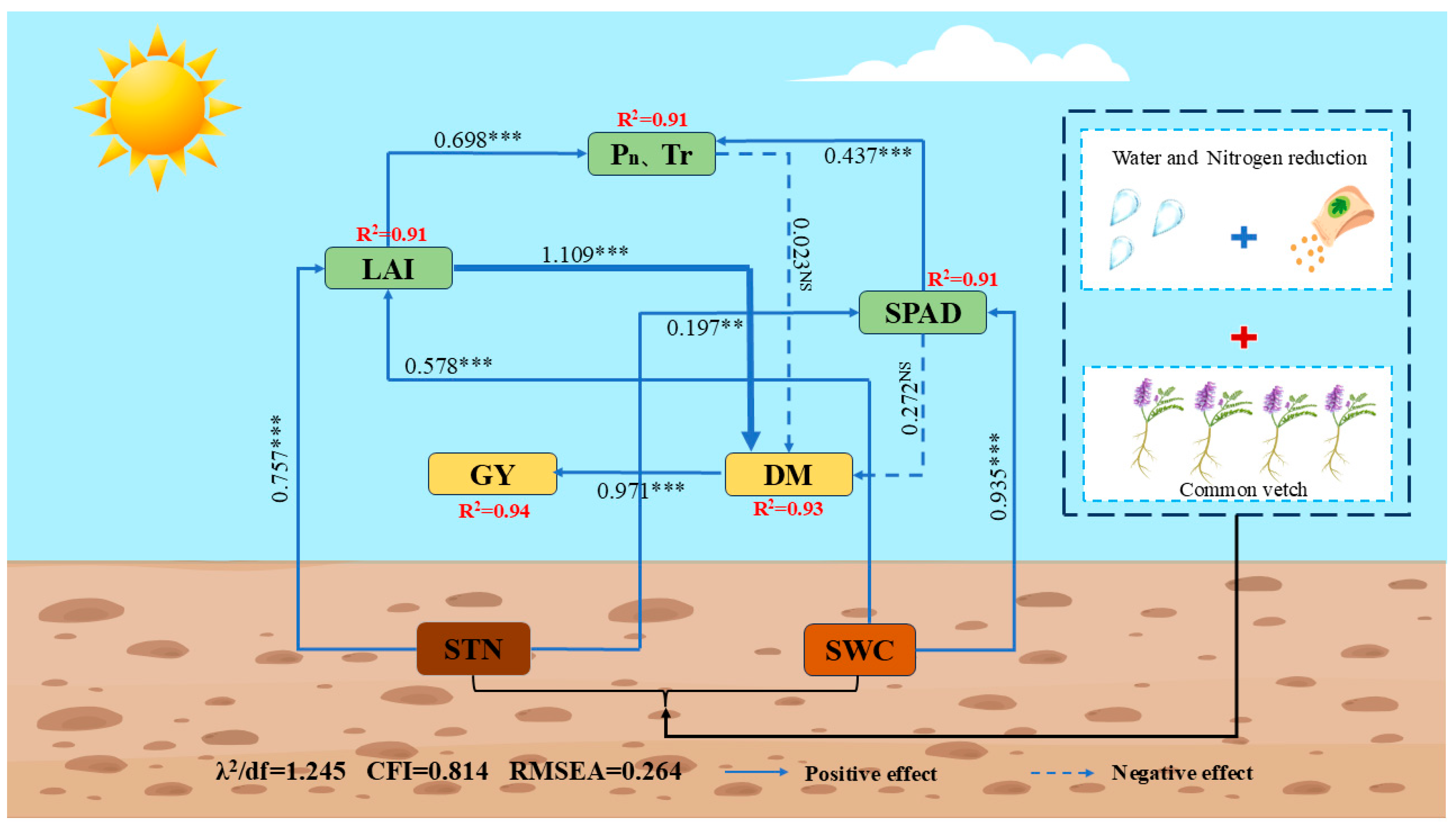 4.2. Green Manure Incorporation Combined with Water and Nitrogen Reduction Optimizes Maize Canopy Characteristics and Dry Matter Accumulation