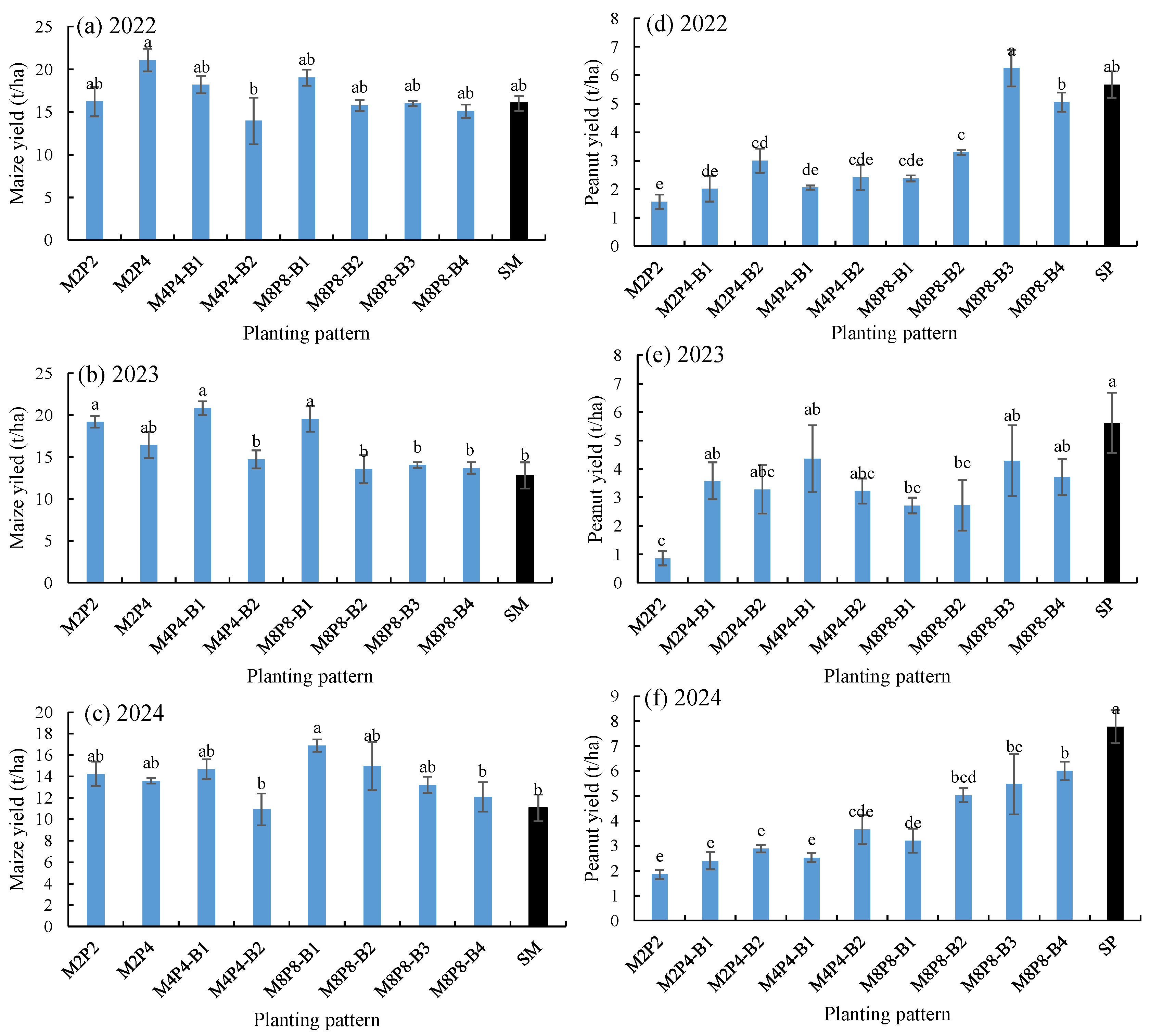 | 2024 | M2P2 | 0.66 ± 0.10 a | 0.12 ± 0.01 c | 0.78 ± 0.09 ab |