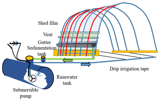 - Xu, Y.; Wang, H. Vegetable rainwater collection and supplementary irrigation technology. Agric. Technol. Equip. 2011, 05, 68–69. [Google Scholar]