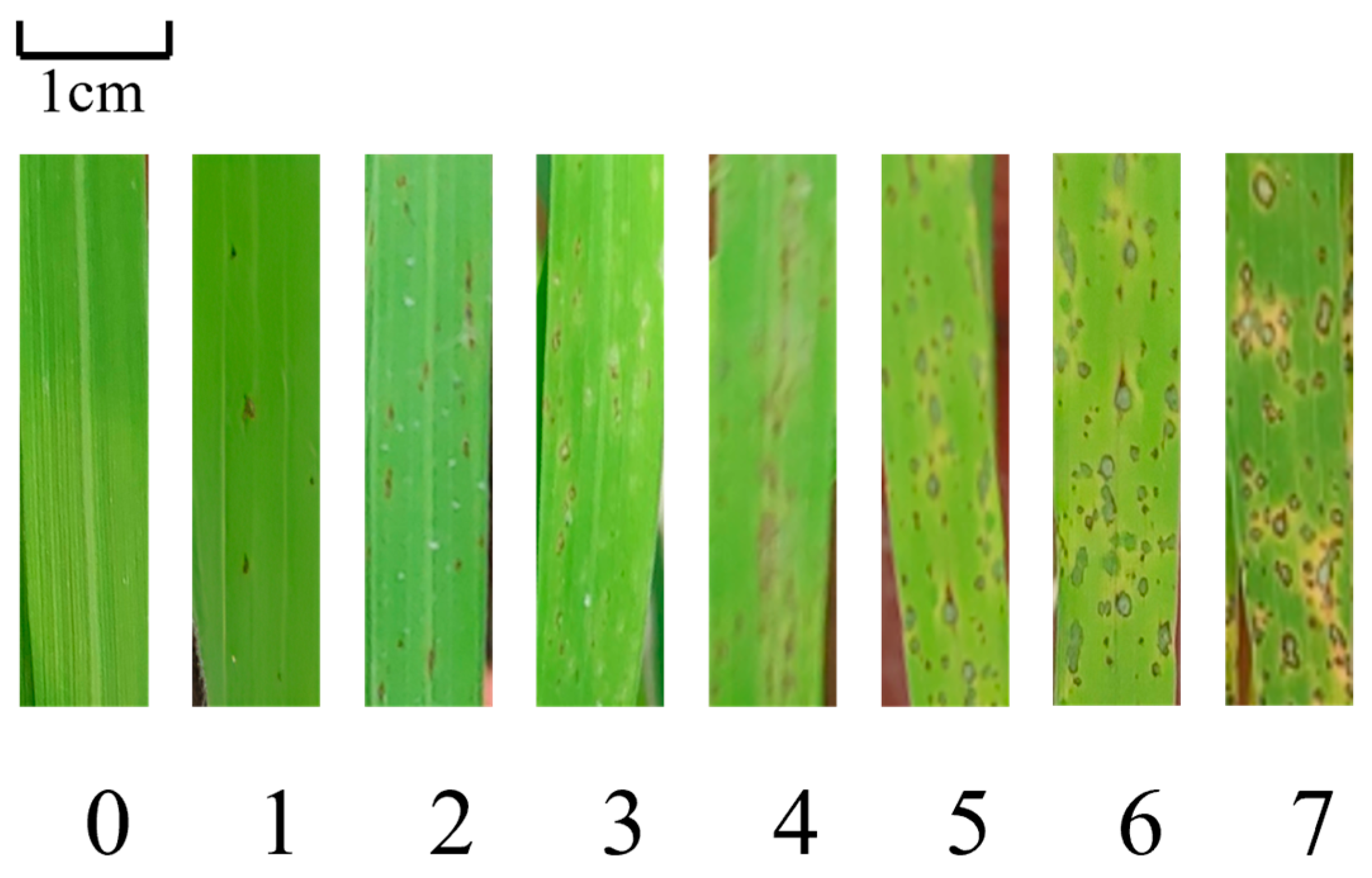- Guo, W.; Dang, M.J.; Jia, X.; He, Q.; Gao, C.F.; Dong, P. Grade classification of wheat stripe rust disease based on deep learning. J. South China Agric. Univ. 2023, 44, 604–612. [Google Scholar]