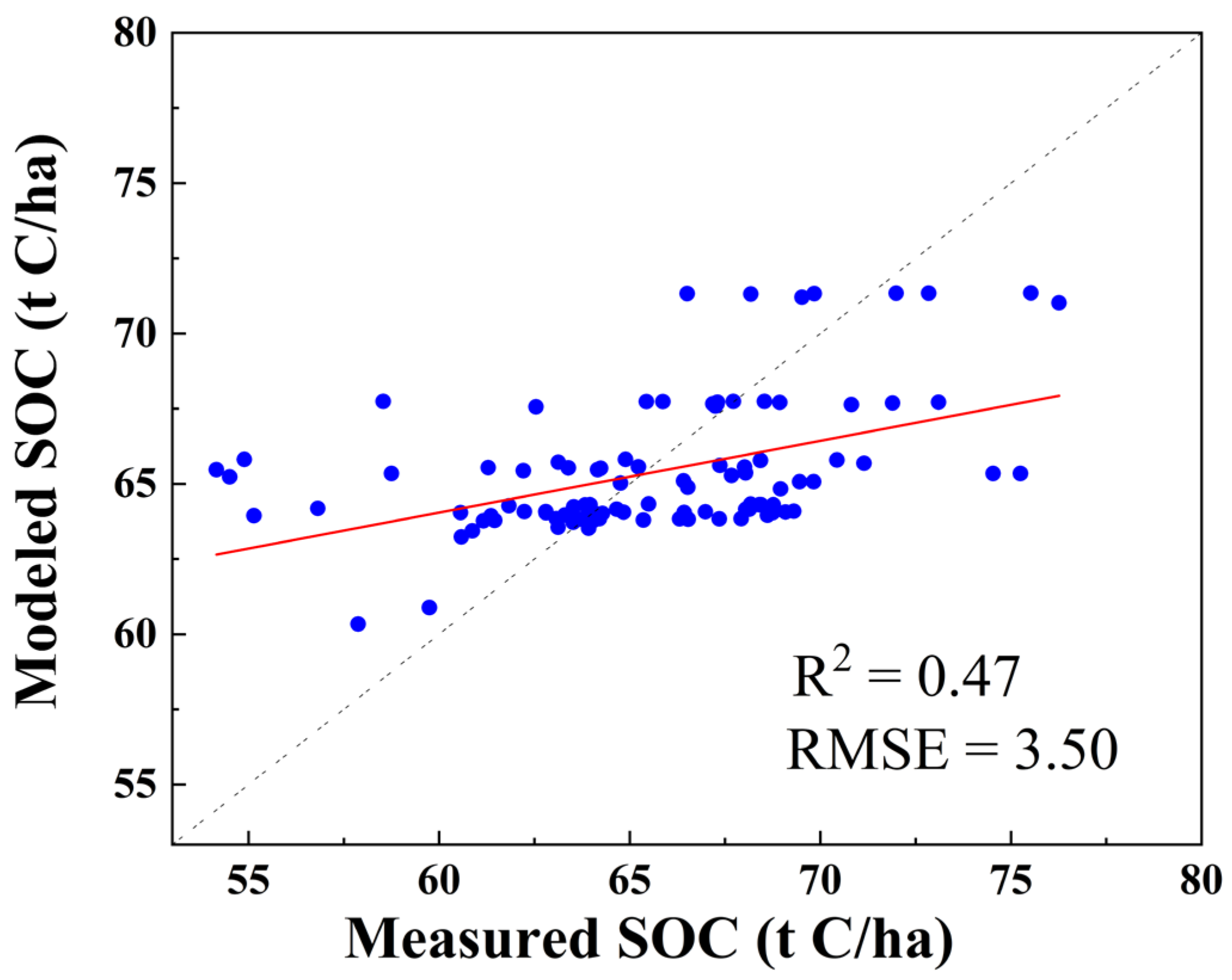 2 of 0.47 and a root mean square error (RMSE) of 3.5 t C/ha (