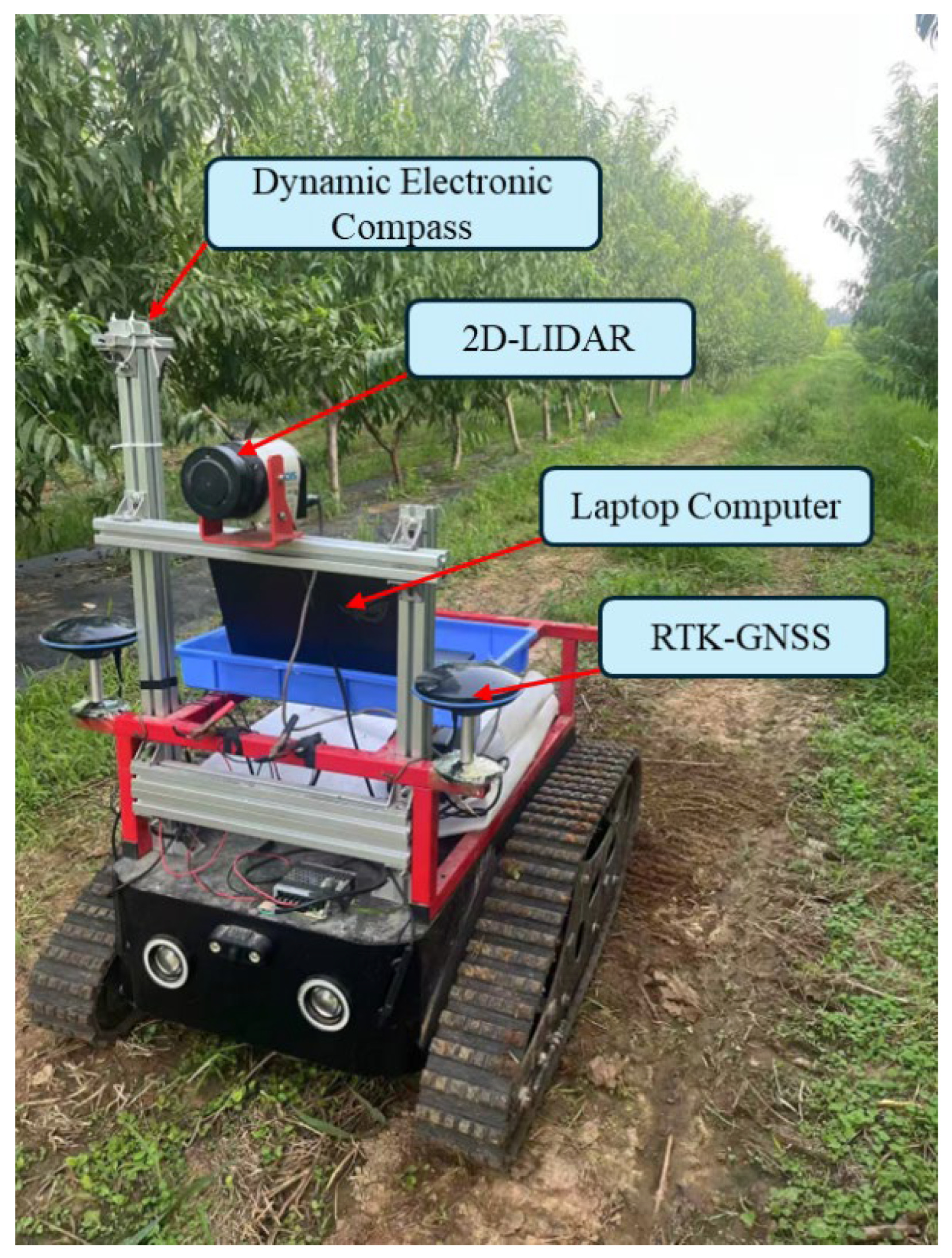 - Su, Z.; Zou, W.; Zhai, C.; Tan, H.; Yang, S.; Qin, X. Design of an Autonomous Orchard Navigation System Based on Multi-Sensor Fusion. Agronomy 2024, 14, 2825. [Google Scholar] [CrossRef]