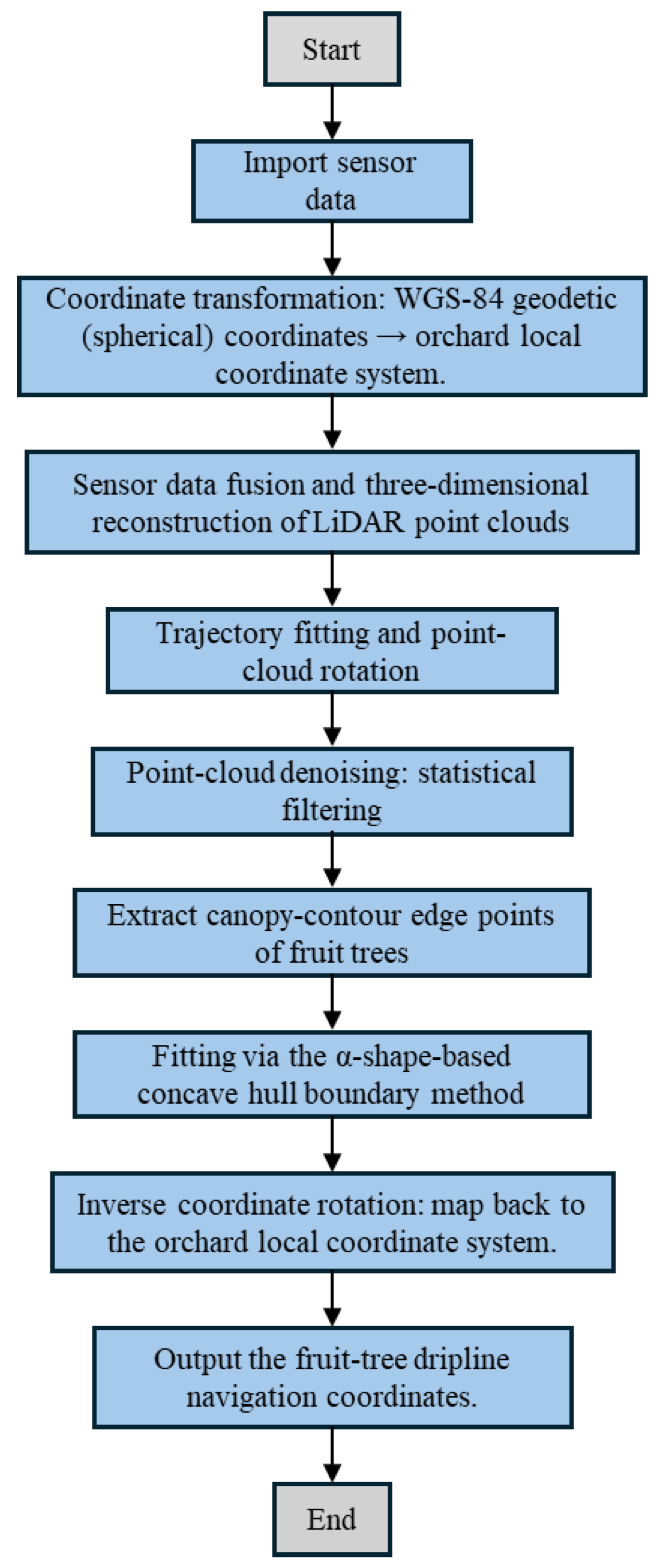 Chicago/Turabian StyleWei, Daochu, Zhichong Wang, Jingwei Wang, Xuecheng Li, Wei Zou, and Changyuan Zhai. 2026. "Research on a Multi-Sensor Fusion-Based Method for Fruit-Tree Dripline Path Detection" Agronomy 16, no. 1: 20. https://doi.org/10.3390/agronomy16010020