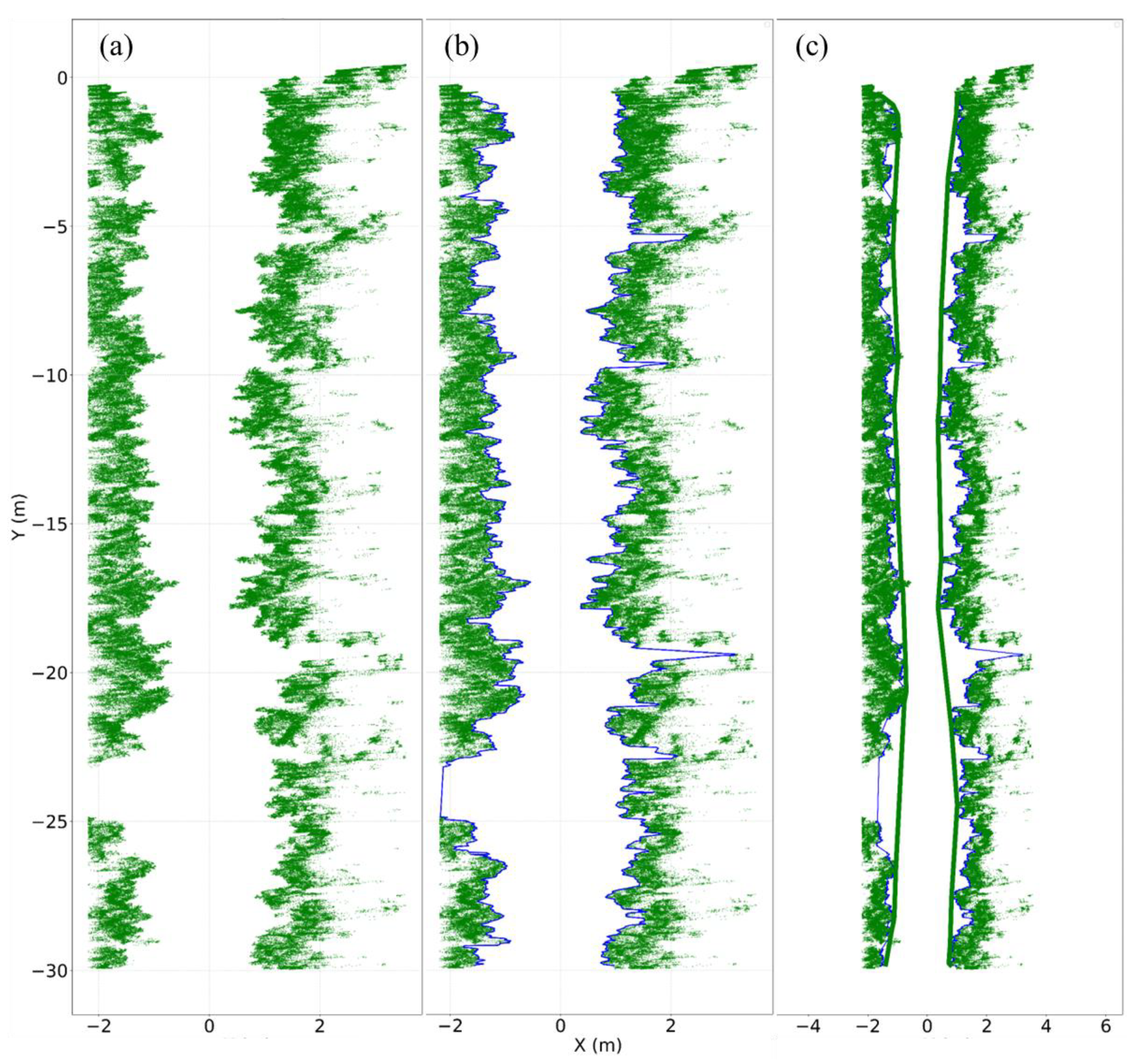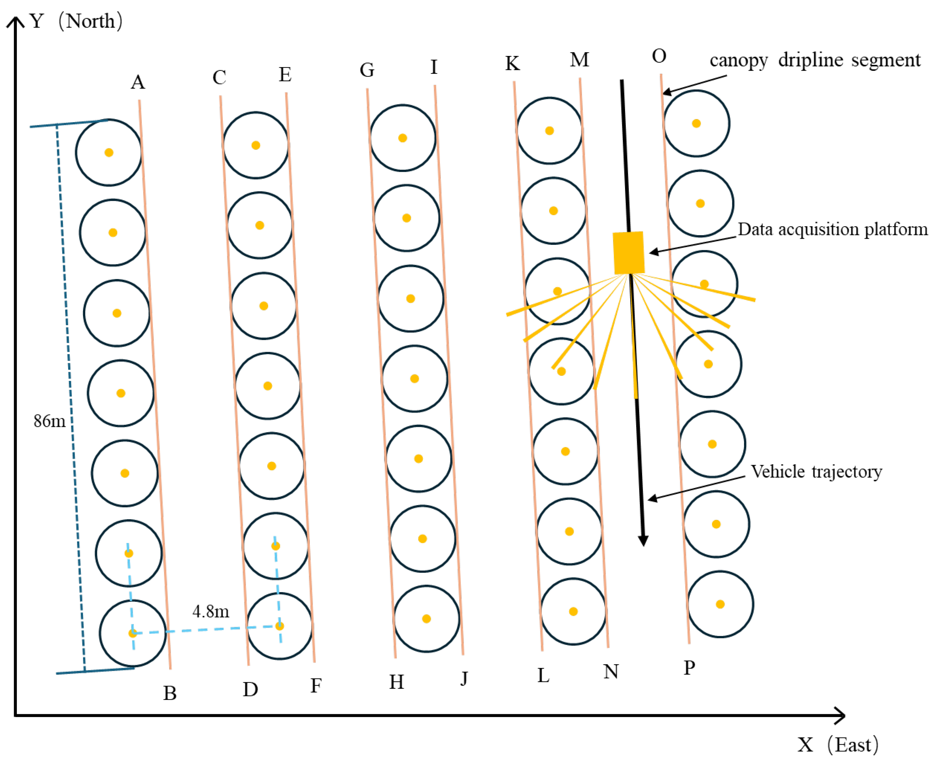 - Zhou, Y.; Wang, X.; Wang, Z.; Ye, Y.; Zhu, F.; Yu, K.; Zhao, Y. Rolling 2D Lidar-Based Navigation Line Extraction Method for Modern Orchard Automation. Agronomy 2025, 15, 816. [Google Scholar] [CrossRef]