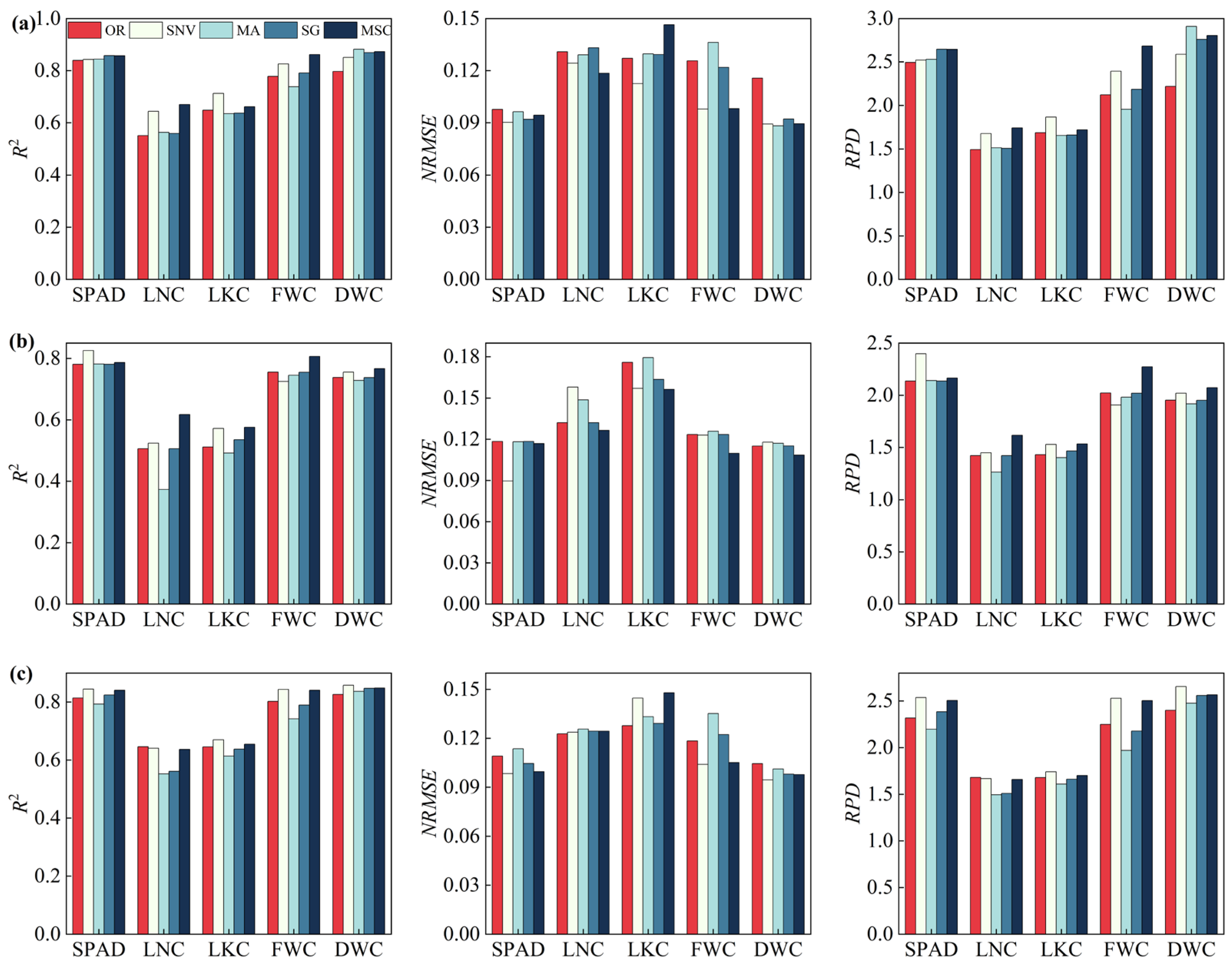| SPAD | SG-PLSR | 0.8572 | CARS-PLSR | 0.8676 |