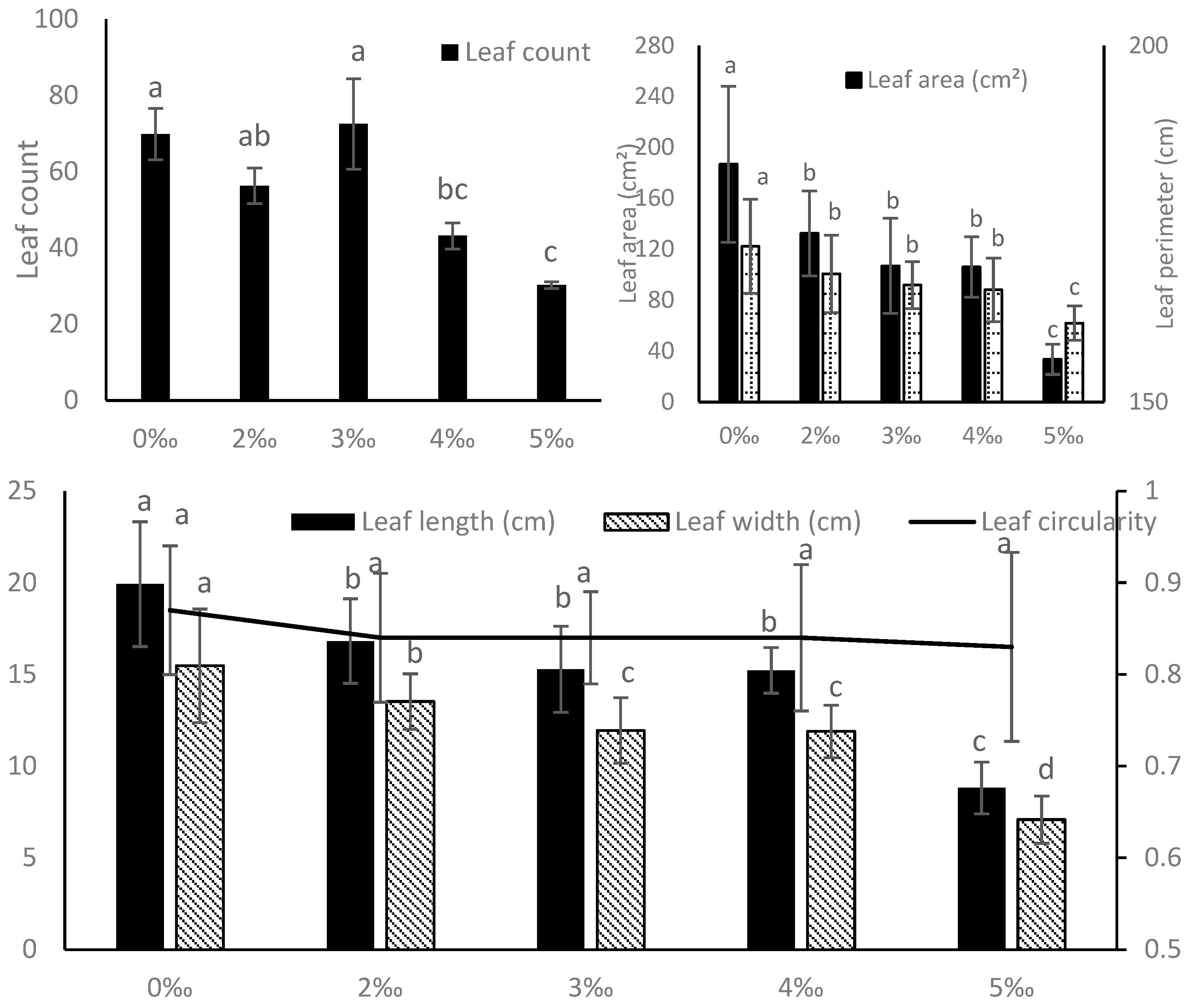 | Leaf FW (g) | 146.67 ± 36.54 a | 196.78 ± 35.33 ab | 225.83 ± 18.62 b | 0.032 |