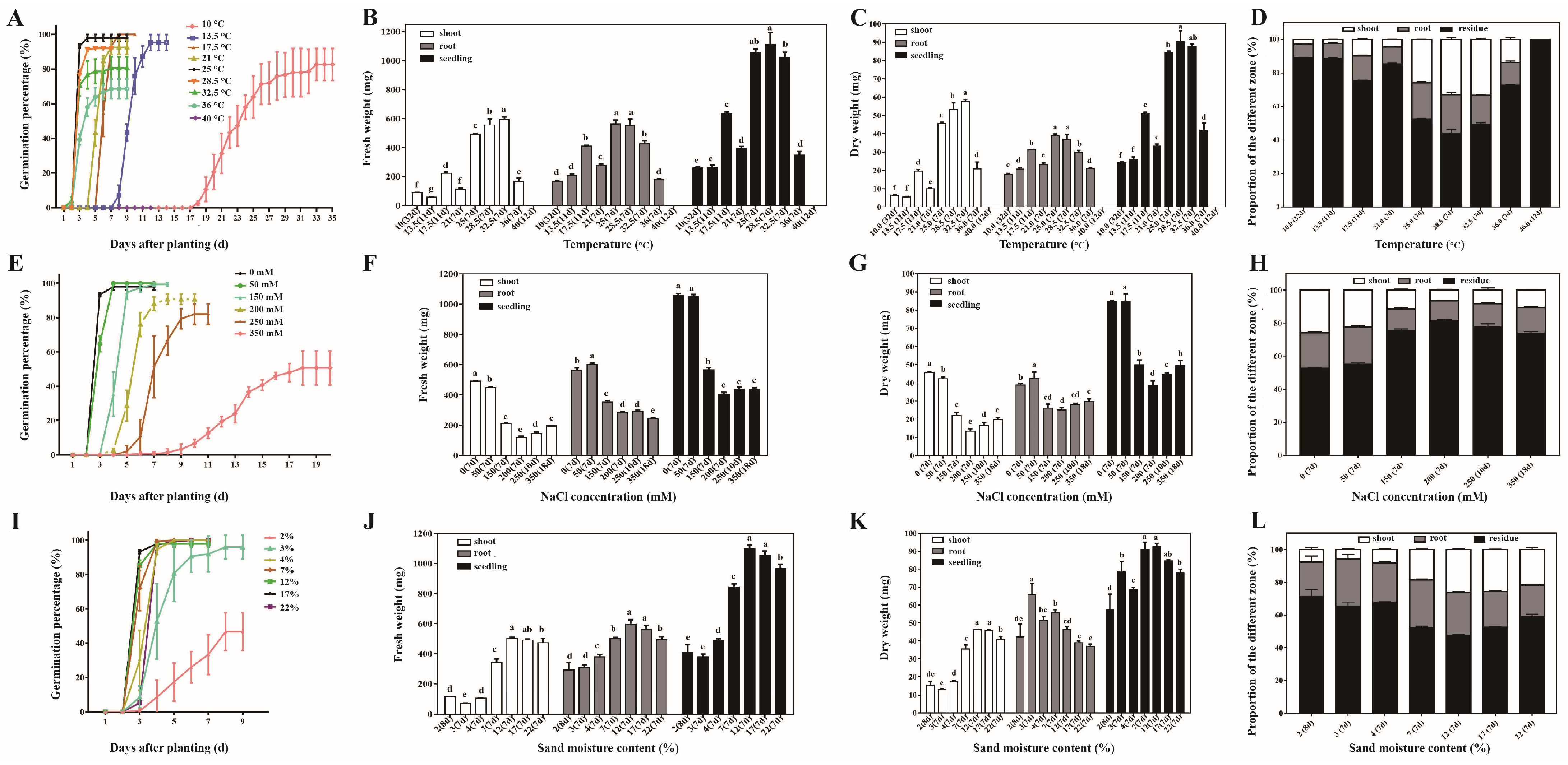 3.1. The Effect of Temperature, Salinity, and Moisture on Maize Seed Germination