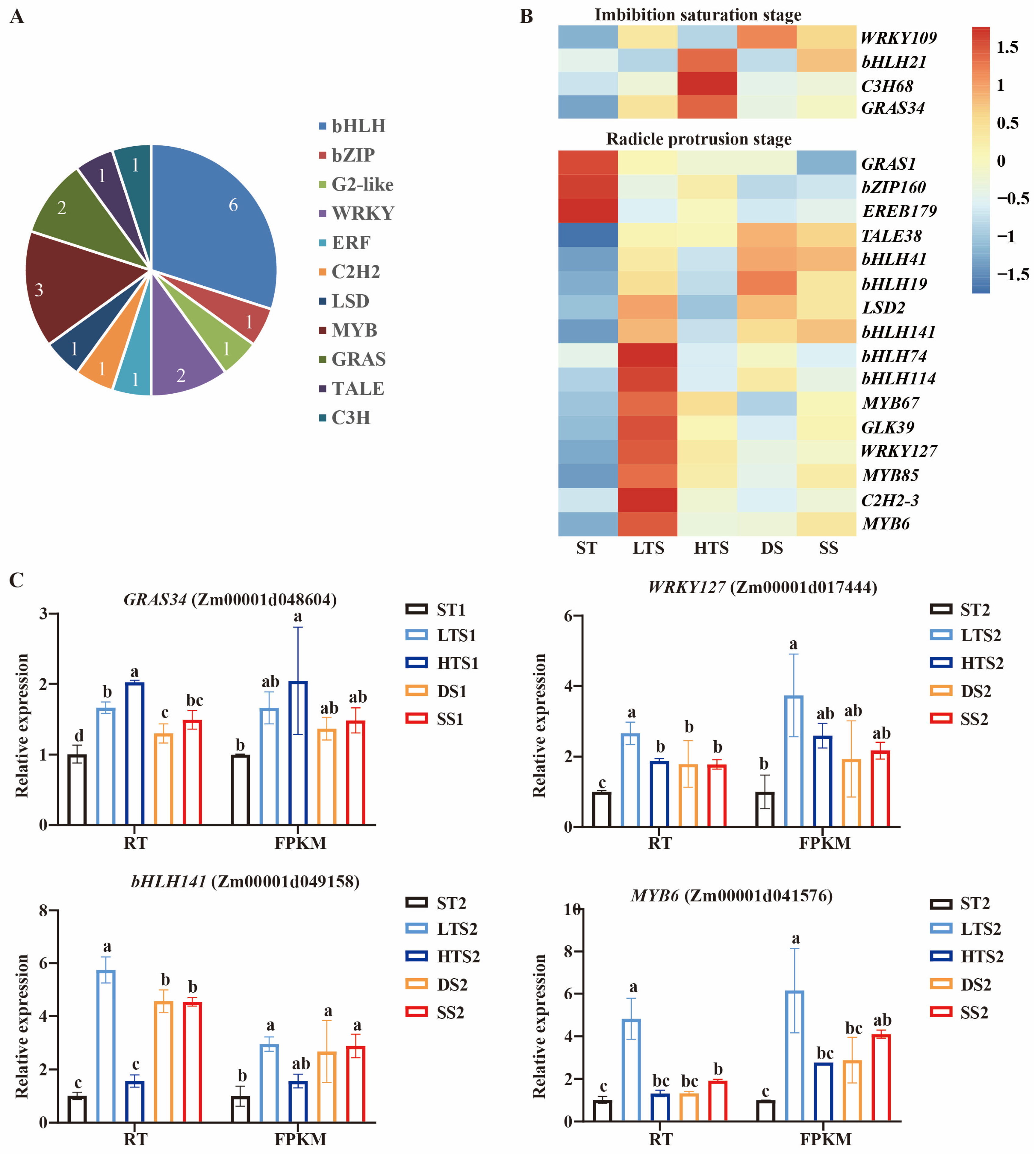 - Zheng, N.; Cheng, Y.; Zhang, J.; Yu, F.; Han, D.; Zhang, H.; Yang, T.; Li, L.; Chen, Q.; Li, L.; et al. The Hub Gene ZmbZIP29 Mediated Early Starch Degradation Within Embryo Determines Seed Germination Speed in Maize; China Agricultural University: Beijing, China, 2025; submitted. [Google Scholar]