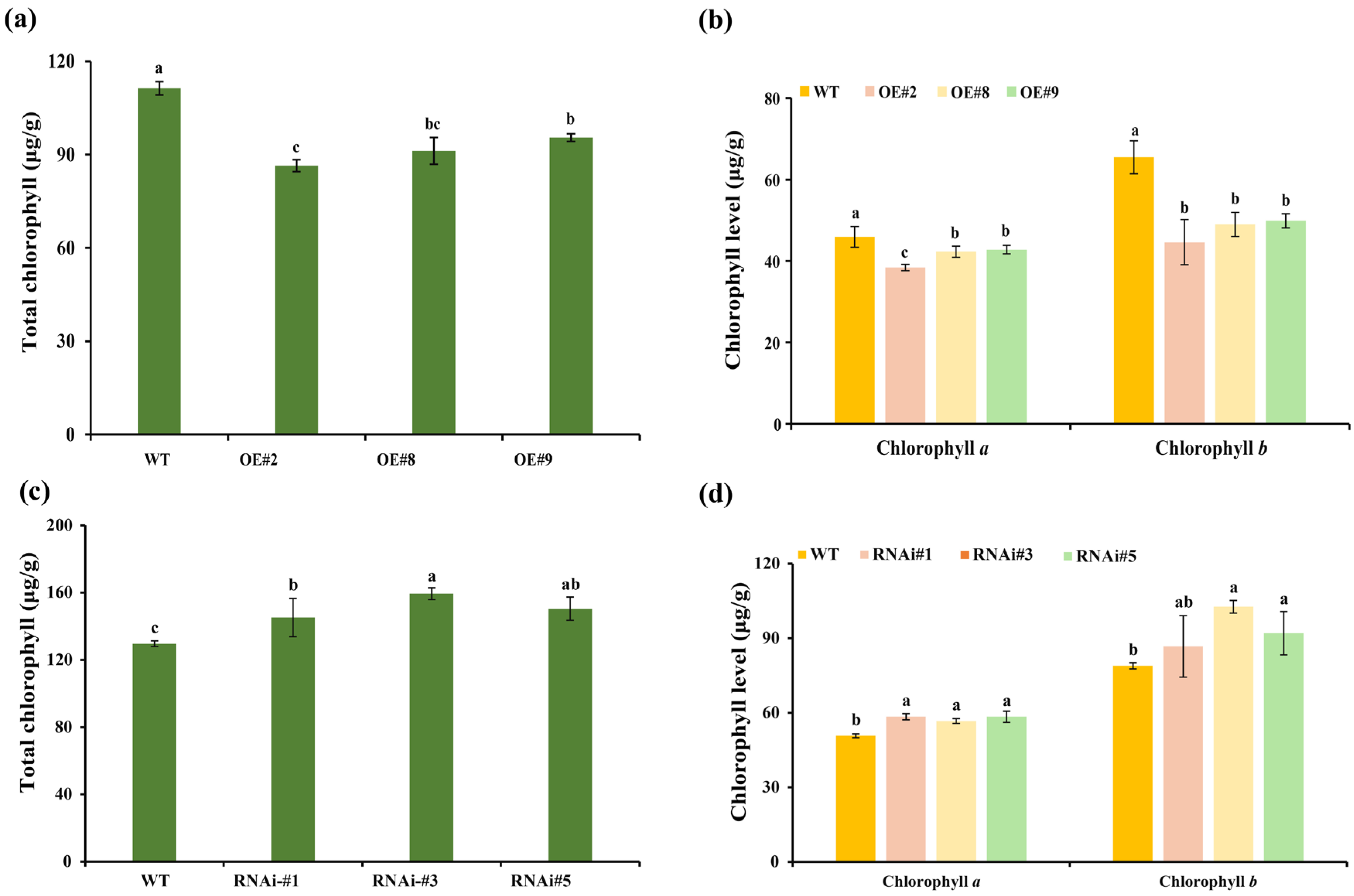 - Zhang, J.; Sui, C.; Liu, H.; Chen, J.; Han, Z.; Yan, Q.; Liu, S.; Liu, H. Effect of chlorophyll biosynthesis-related genes on the leaf color in Hosta (Hosta plantaginea Aschers) and tobacco (Nicotiana tabacum L.). BMC Plant Biol. 2021, 21, 45. [Google Scholar] [CrossRef]
