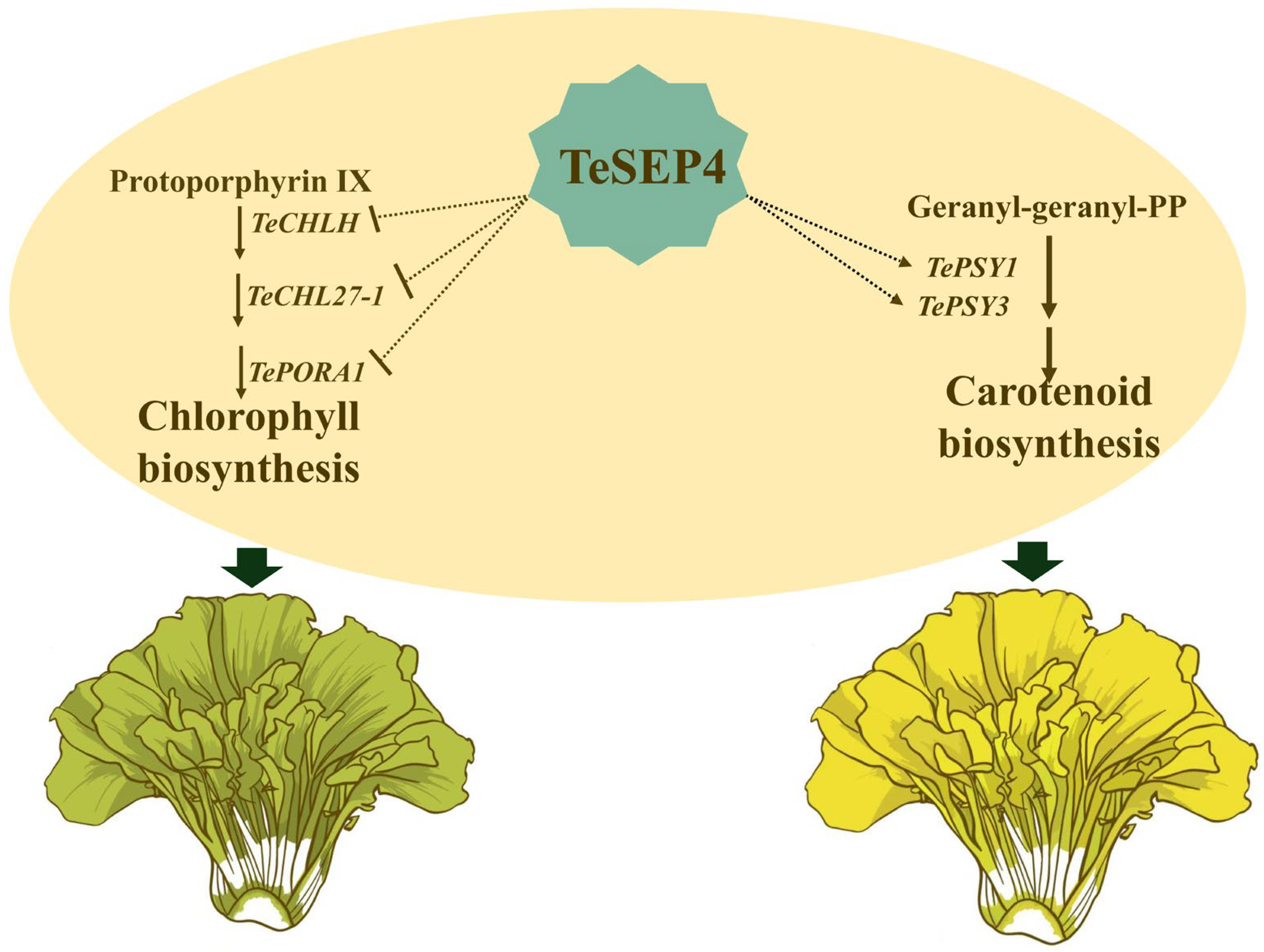 4.1. TeSEP4 Simultaneously Regulates Chlorophyll and Carotenoid Biosynthesis in Marigold Petals
