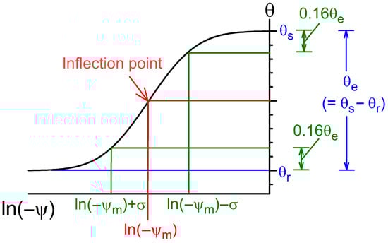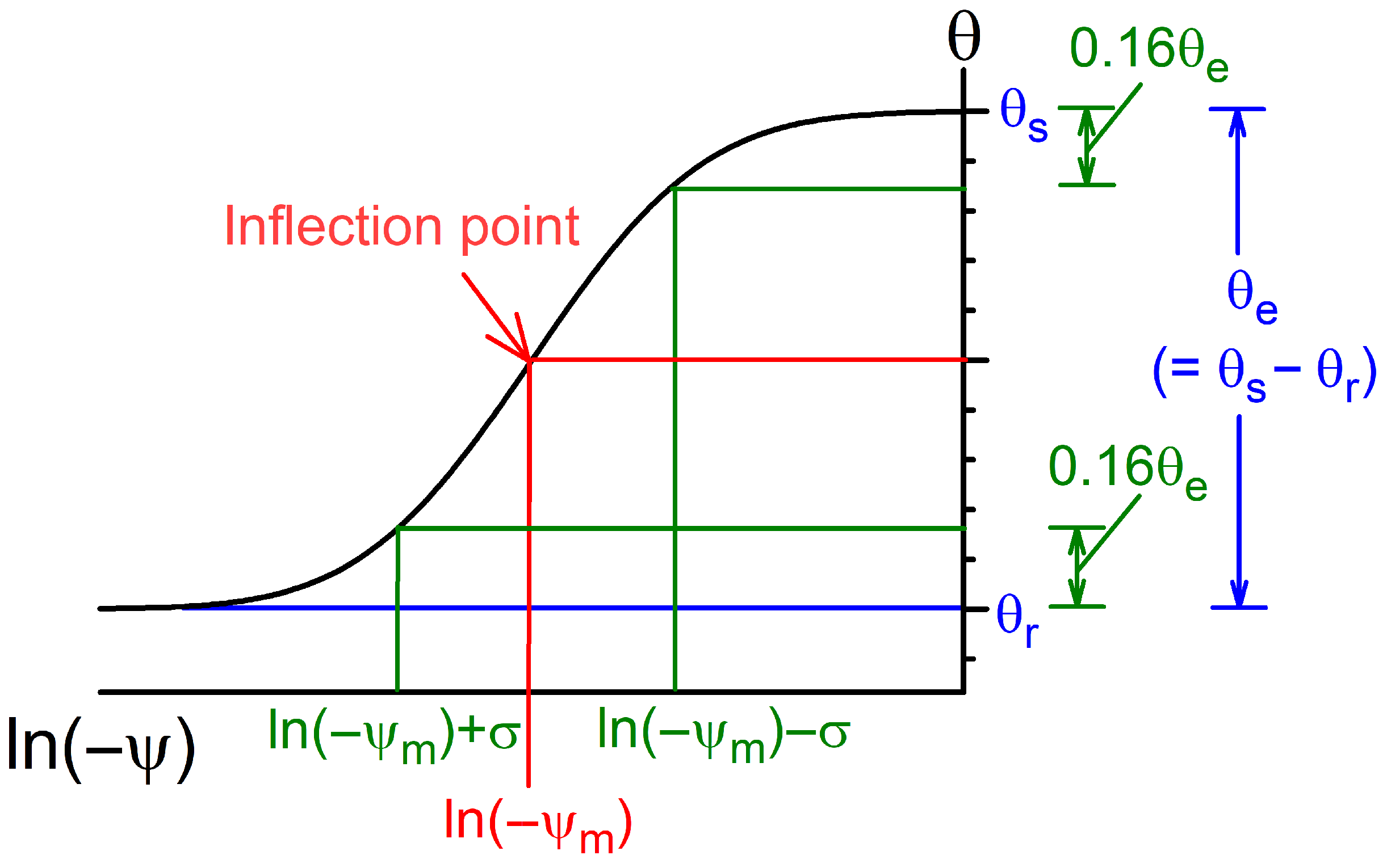 m (cm) is the matric pressure head corresponding to the median pore radius; σ represents the width of the pore-size distribution; and