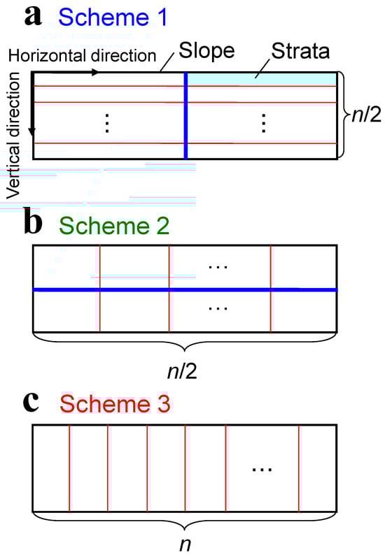 In general, the interval of the lag distance, h, is set to be constant; however, in the present study, N(h) is set to be constant to eliminate the bias of the number of data points (N(h) was fixed to 20 and 15 for the slope and vertical directions, respectively). In order to plot the γ(h), the arithmetic mean of the lag distance in each class was used to plot (h).
