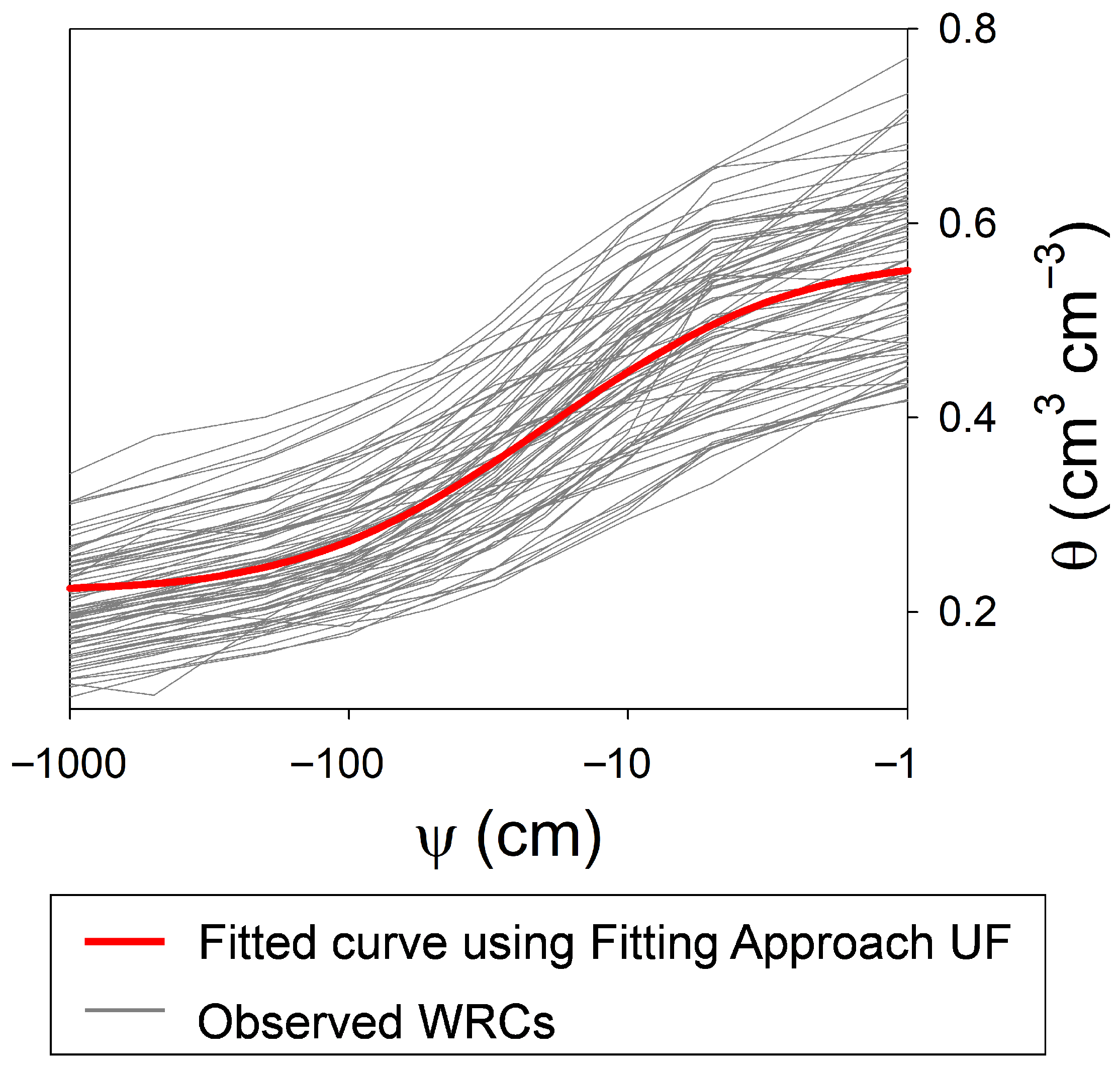 In the Fitting Approach UF (Universal Fitting), a single curve was applied to the entire data set with the LN model to exclude the spatial variability in all the parameters (ψ