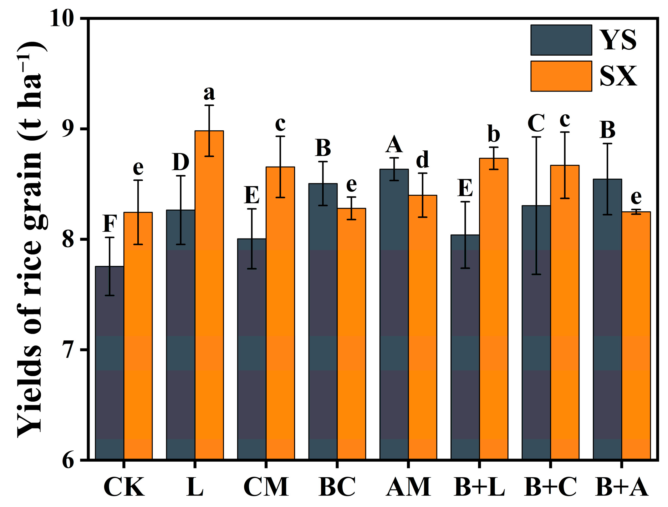 Chicago/Turabian StyleLiu, Jian, Ting Wang, Lihua Lan, Qingjiu Meng, Jun Xu, Minjun Hu, Tehseen Sajid, and Jun Meng. 2026. "Improving Soil Health and Rice Yields with the Application of Soil Amendments in Acidic Paddy Soils" Agronomy 16, no. 1: 9. https://doi.org/10.3390/agronomy16010009