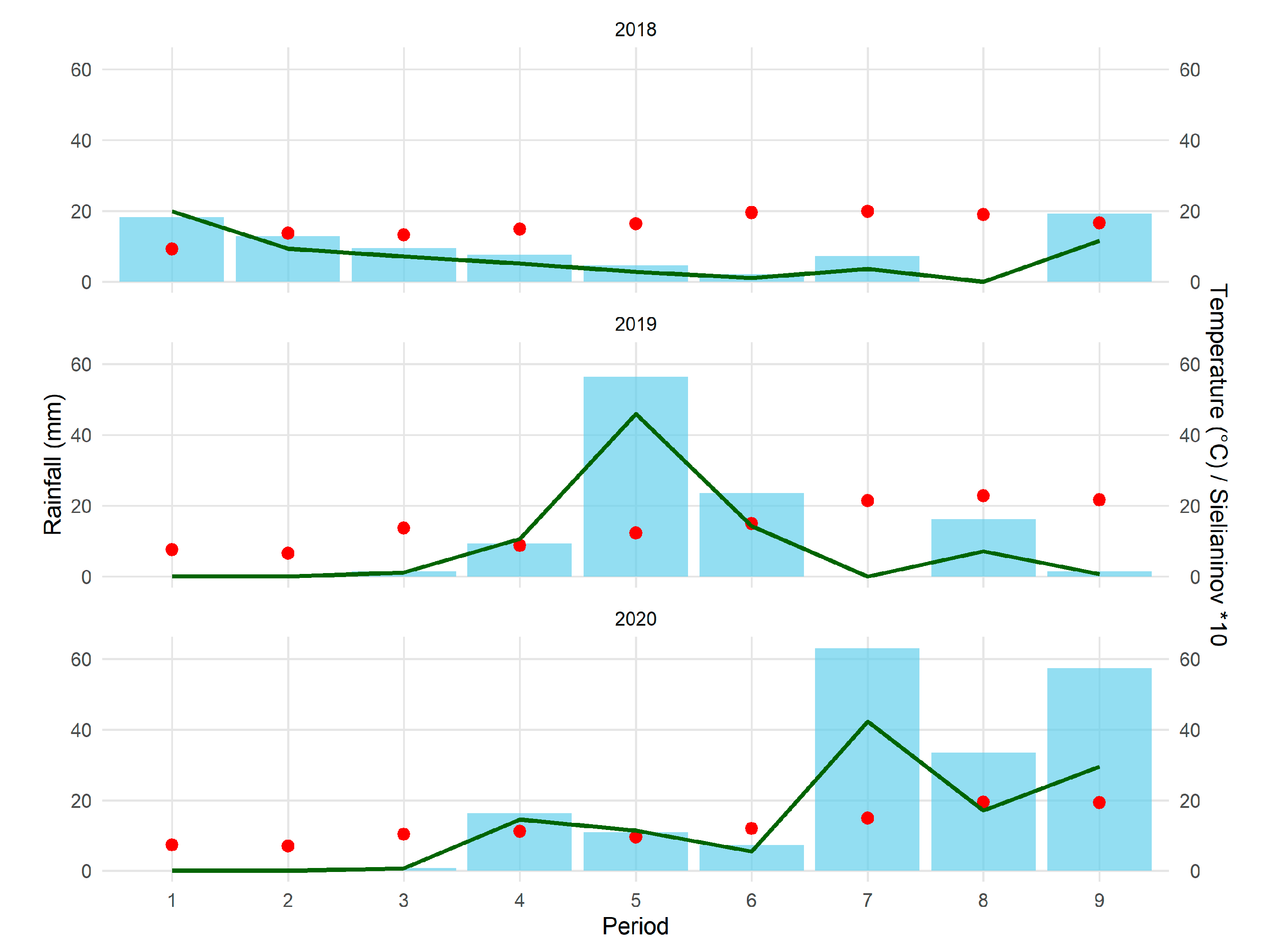 | 2020 | PL | 604 ± 38.1 b | 1.5 ± 1.91 a | 15.0 ± 1.41 a | 4.50 ± 1.00 a | 9.63 ± 0.56 ab |