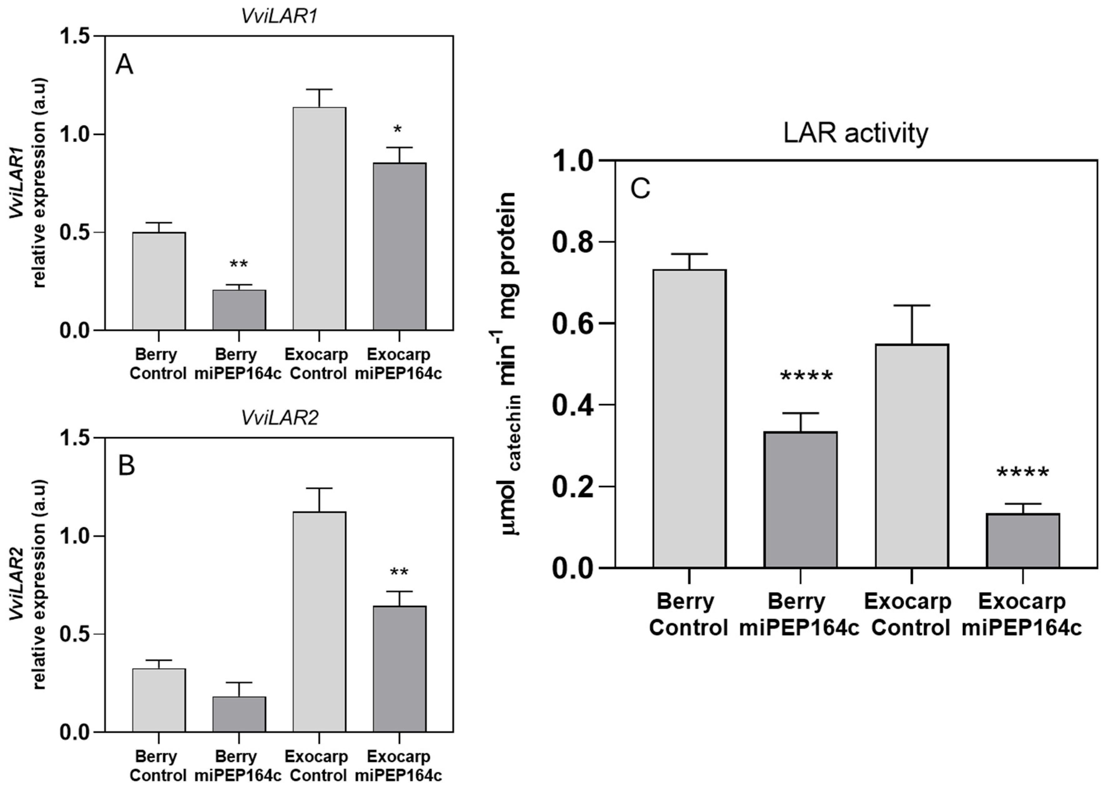 Chicago/Turabian StyleVale, Mariana, Arnaud Lanoue, Cécile Abdallah, Hernâni Gerós, and Artur Conde. 2026. "Application and Effect of Micropeptide miPEP164c on Flavonoid Pathways and Phenolic Profiles in Grapevine “Vinhão” Cultivar" Agronomy 16, no. 1: 97. https://doi.org/10.3390/agronomy16010097