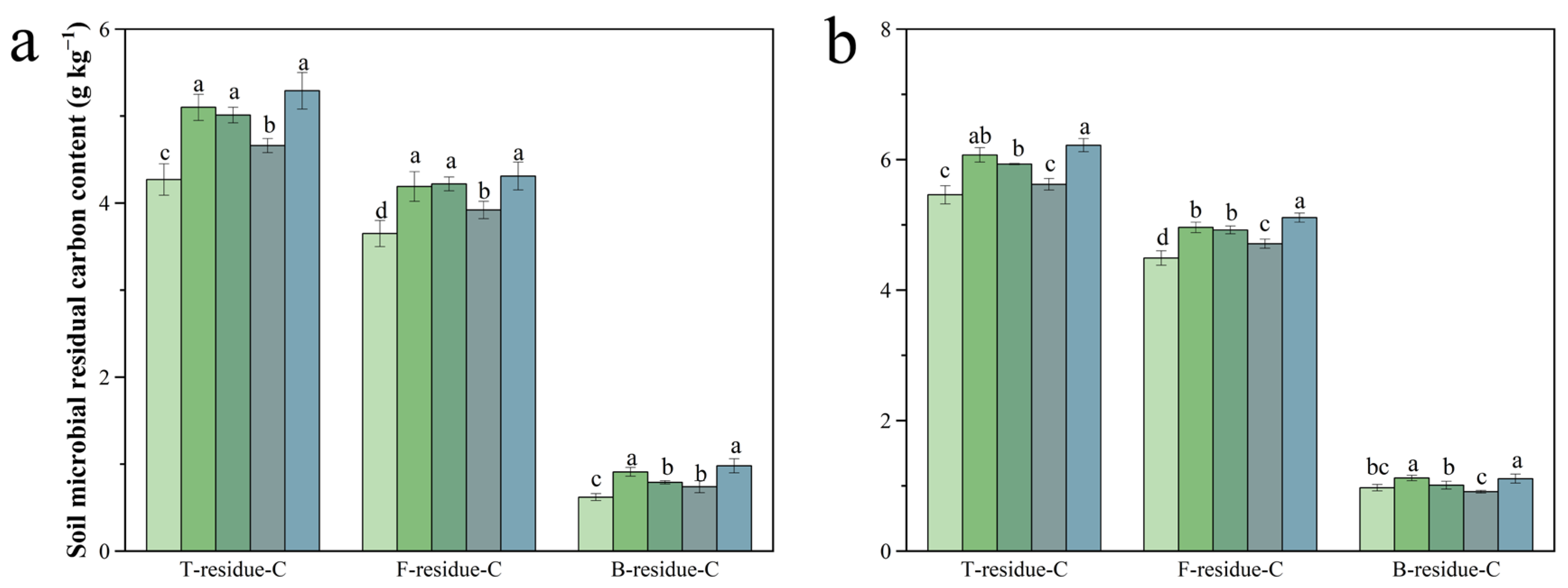 3.3.2. Effects on Soil Microbial Residual Carbon Content