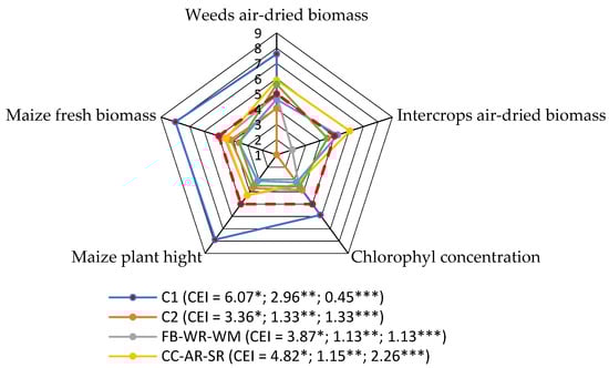 Cirsium arvense, less competitive with maize (CEI 4.82), and can be used as an Integrated Pest Management tool.
