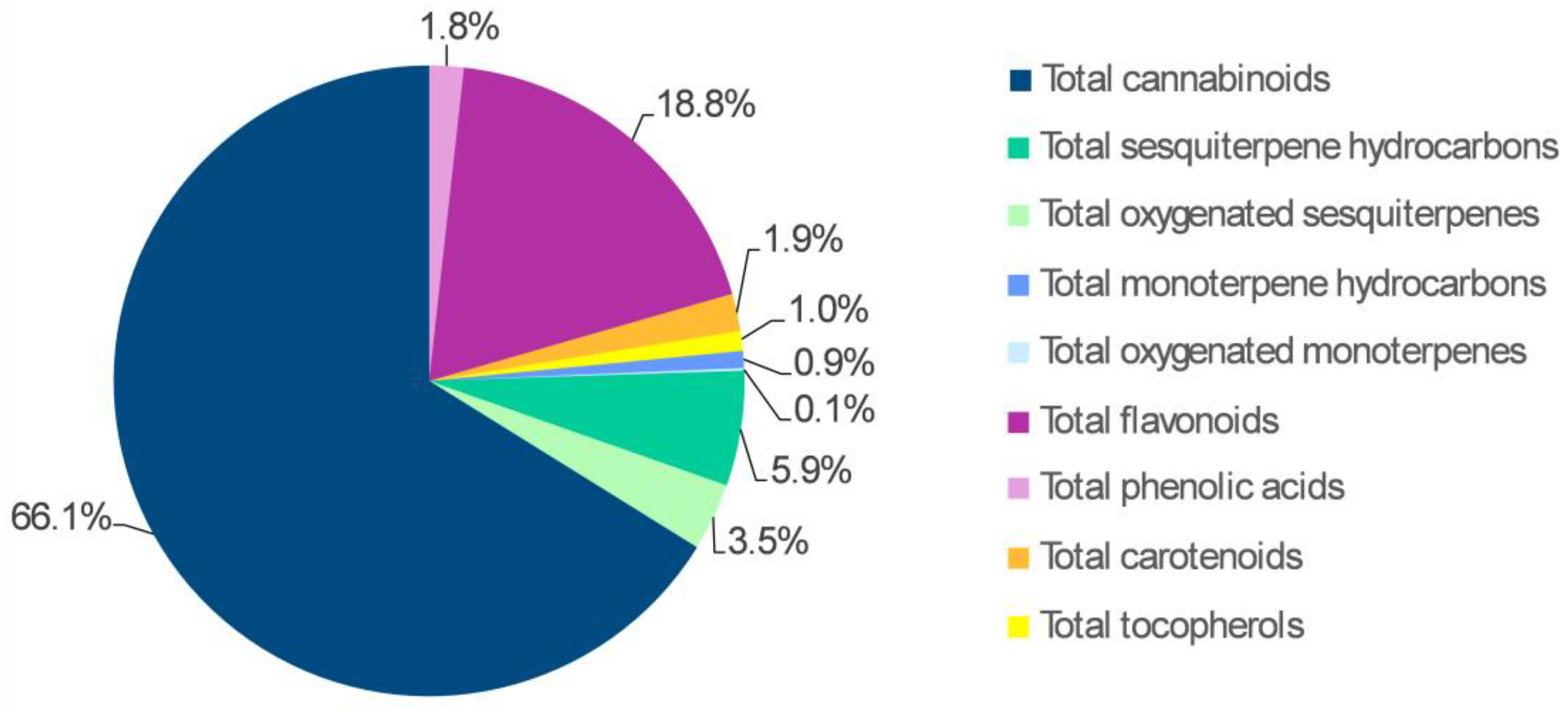 3.1. The Phytochemical Content and the Total Antioxidant Activity of Hemp Inflorescences