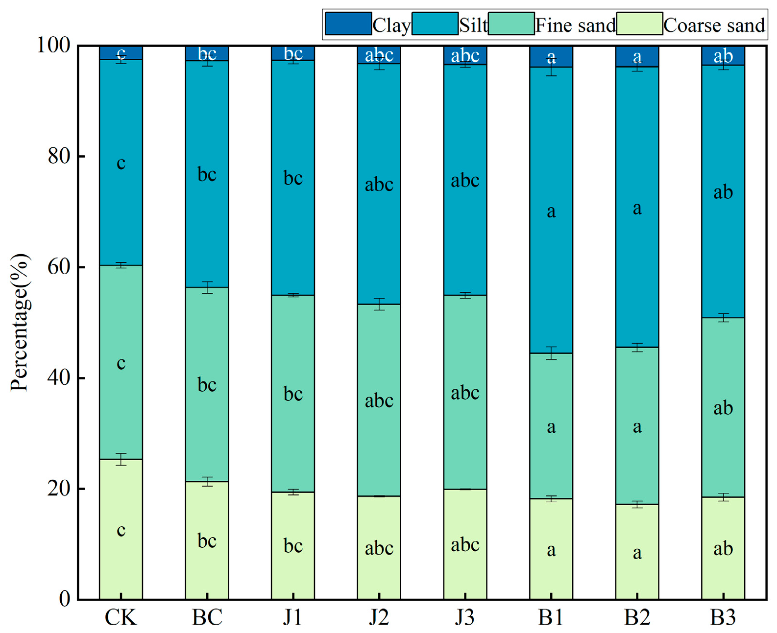 3.3. Effect of Microbial Coating Agents on Soil Particle Size of Alfalfa