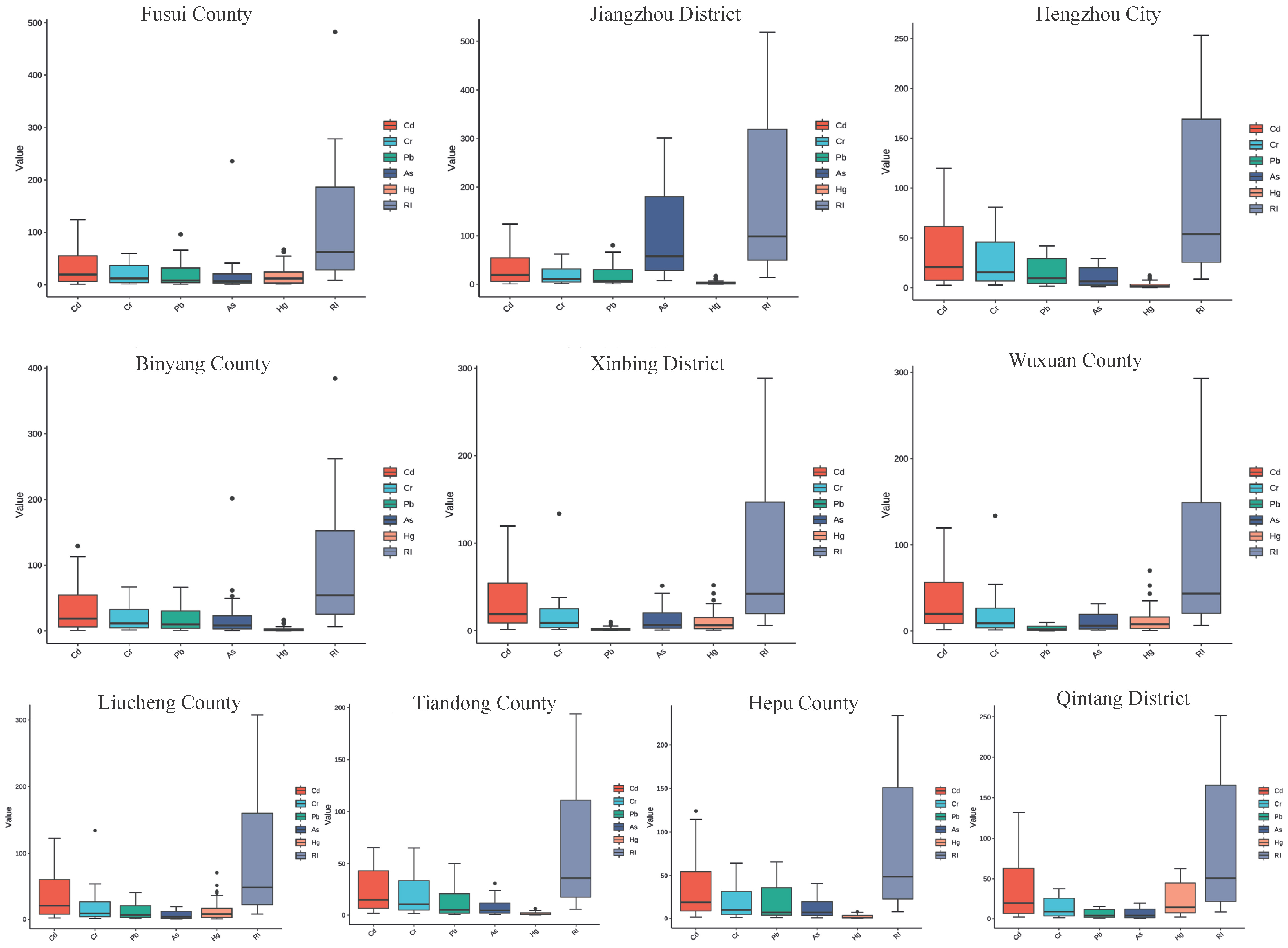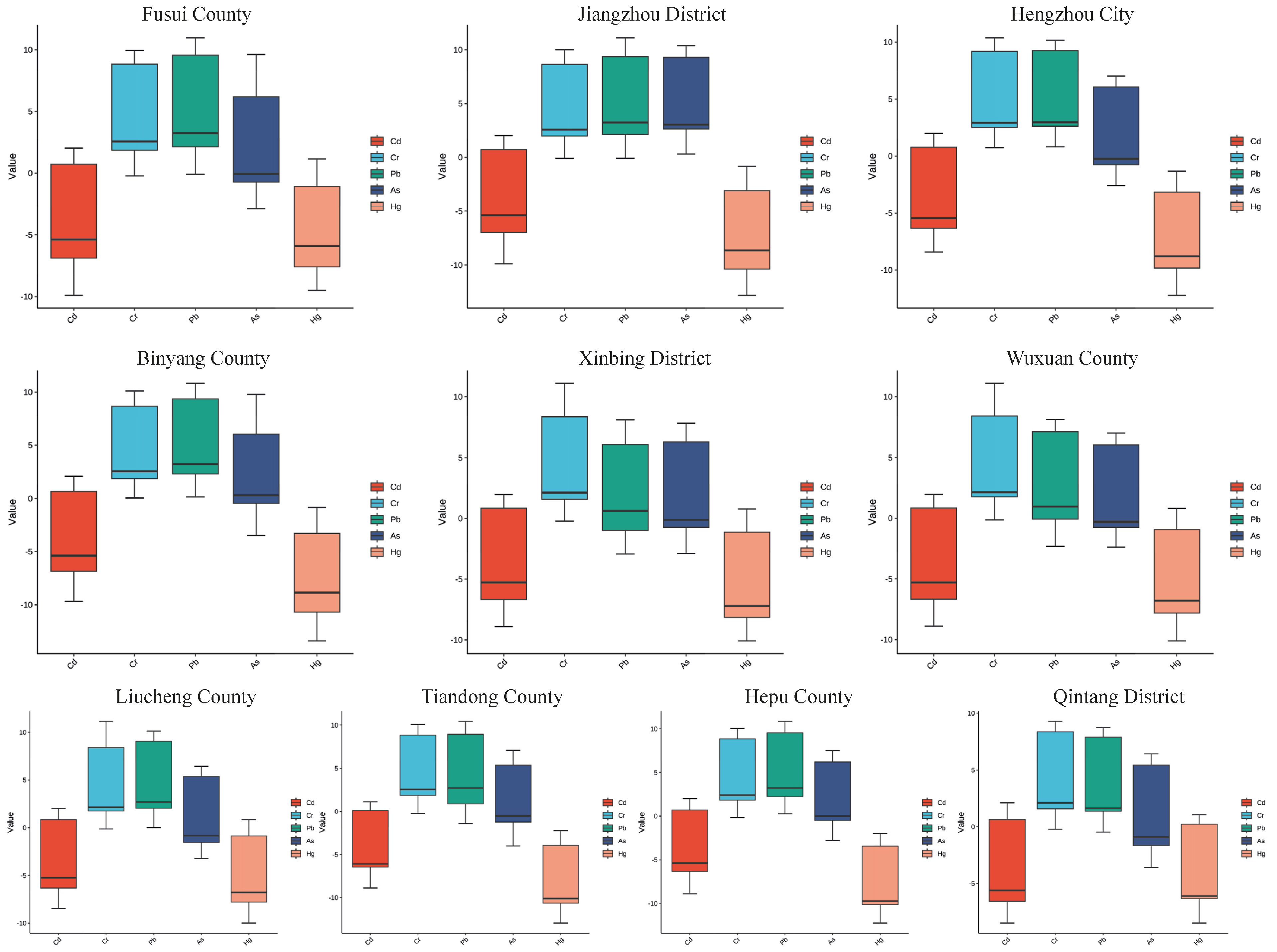 | Hg | Max. value | 0.939 | 0.171 | 0.095 | 0.128 | 0.39 | 0.727 | 0.791 | 0.062 | 0.072 | 0.49 |