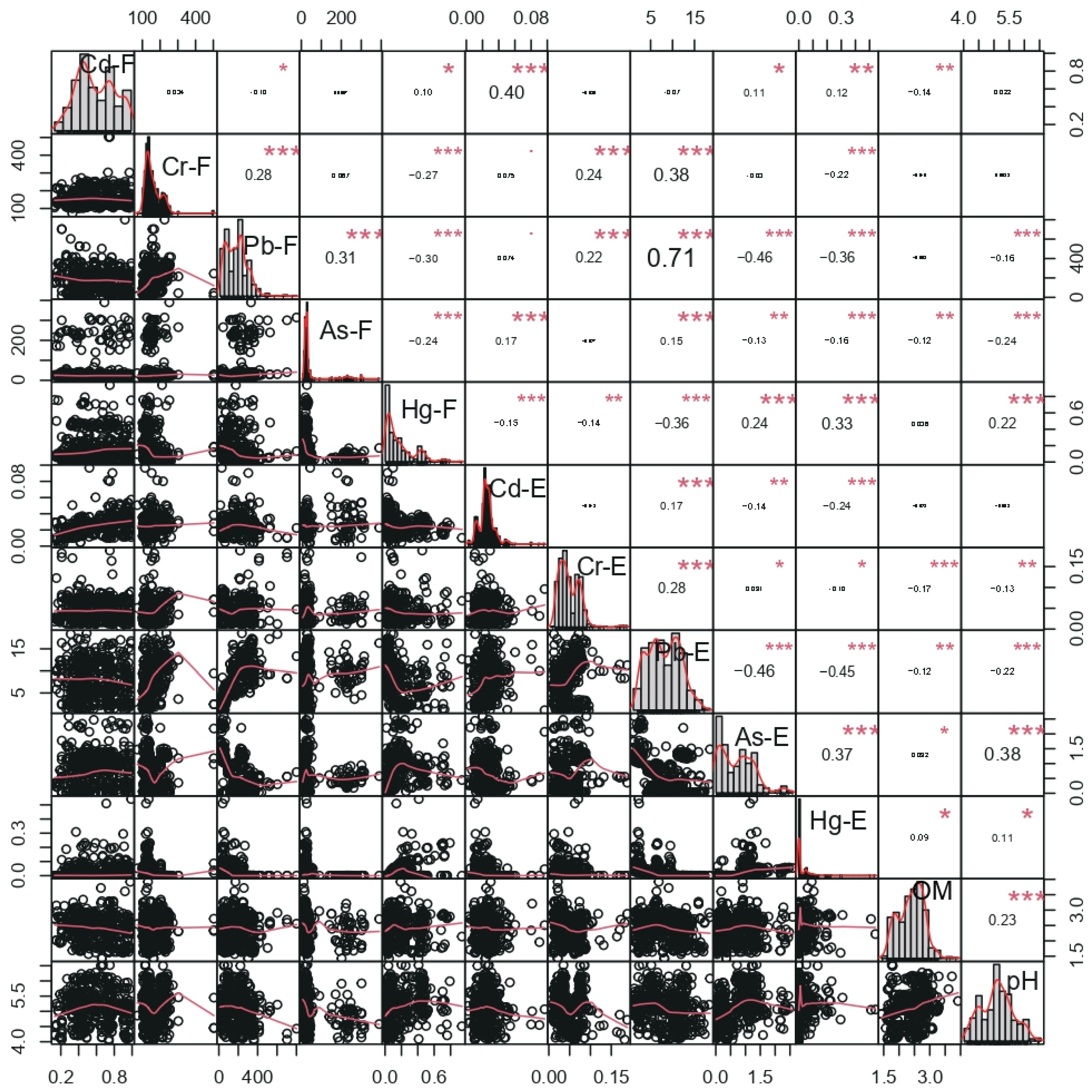 3.6. Correlation Among pH, Organic Matter, and Total and Available Heavy Metals