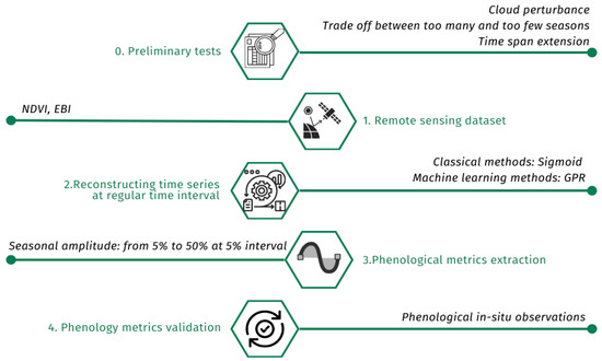 Steps for phenological analysis with Sentinel-2 data.