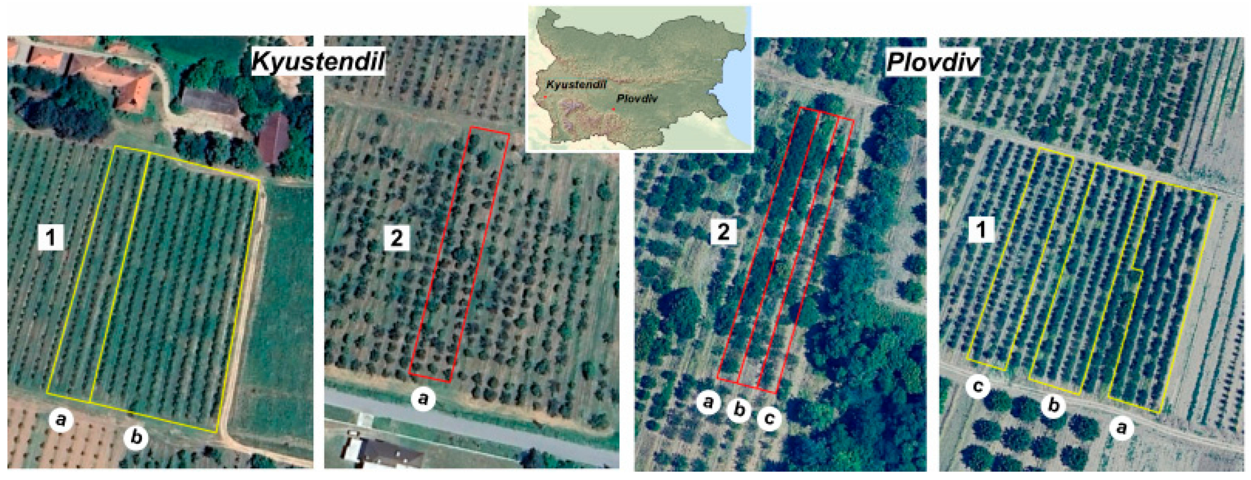 - Georgiev, V.; Borovinova, M.; Koleva, A. Cherry; Matkom: Sofia, Bulgaria, 2007; p. 351. (In Bulgarian) [Google Scholar]