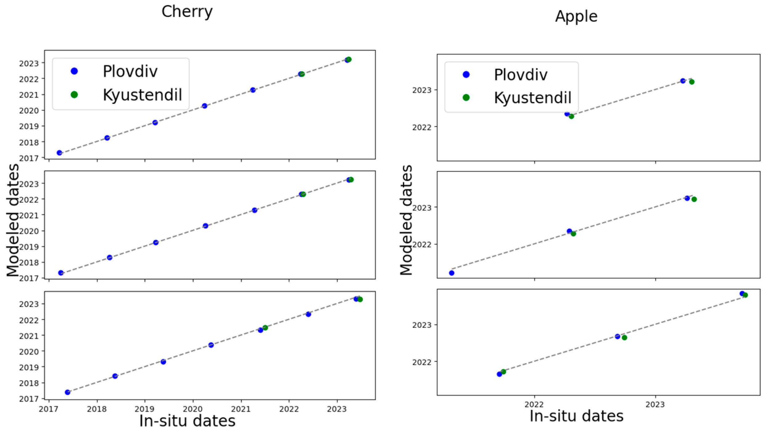 APA StyleKazandjiev, V., Ganeva, D., Roumenina, E., Jelev, G., Georgieva, V., Tsenova, B., Malasheva, P., Nesheva, M., Malchev, S., Dimitrova, S., & Stoeva, A. (2026). Predicting Phenological Stages for Cherry and Apple Orchards: A Comparative Study with Meteorological and Satellite Data. Agronomy, 16(2), 200. https://doi.org/10.3390/agronomy16020200
