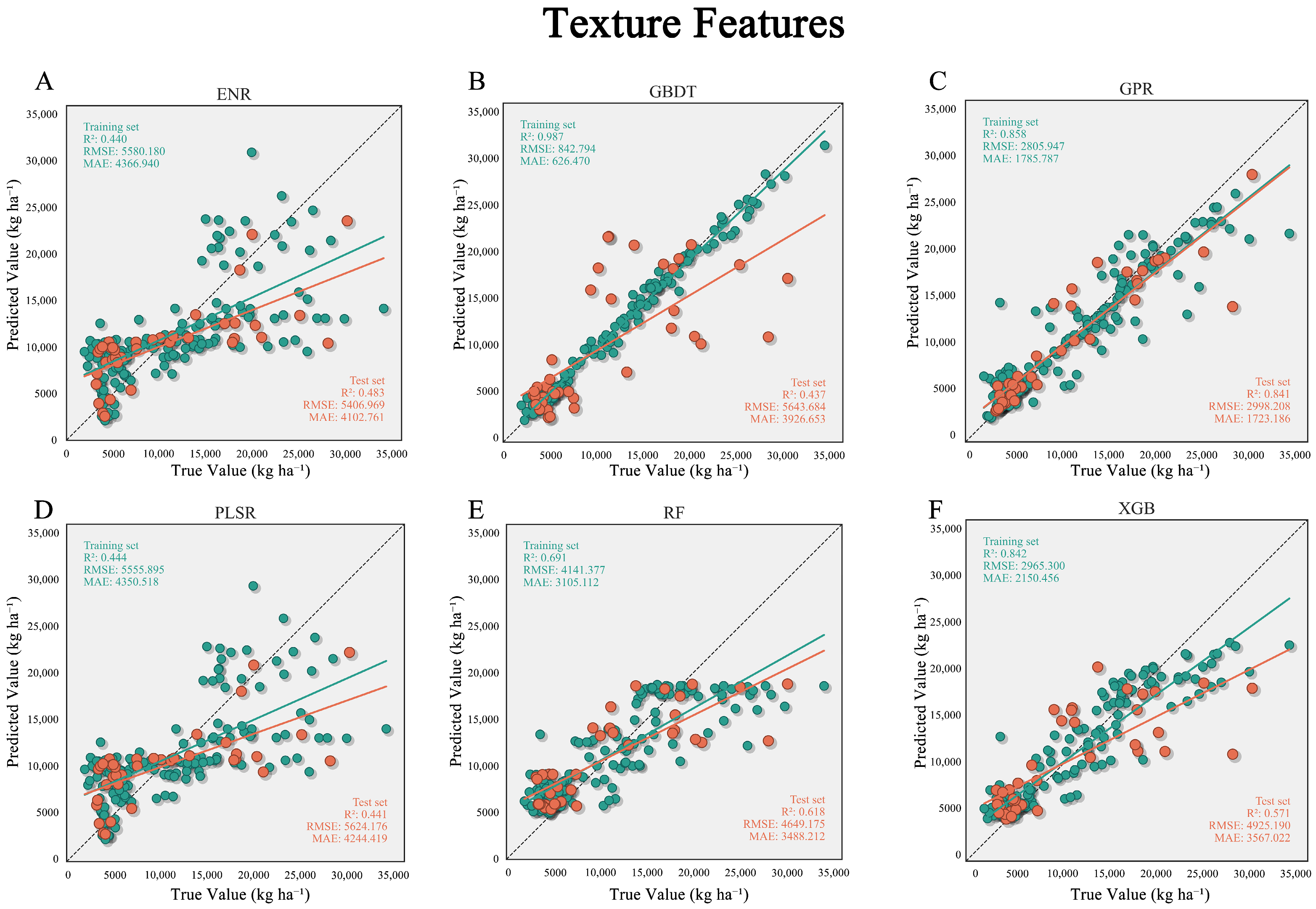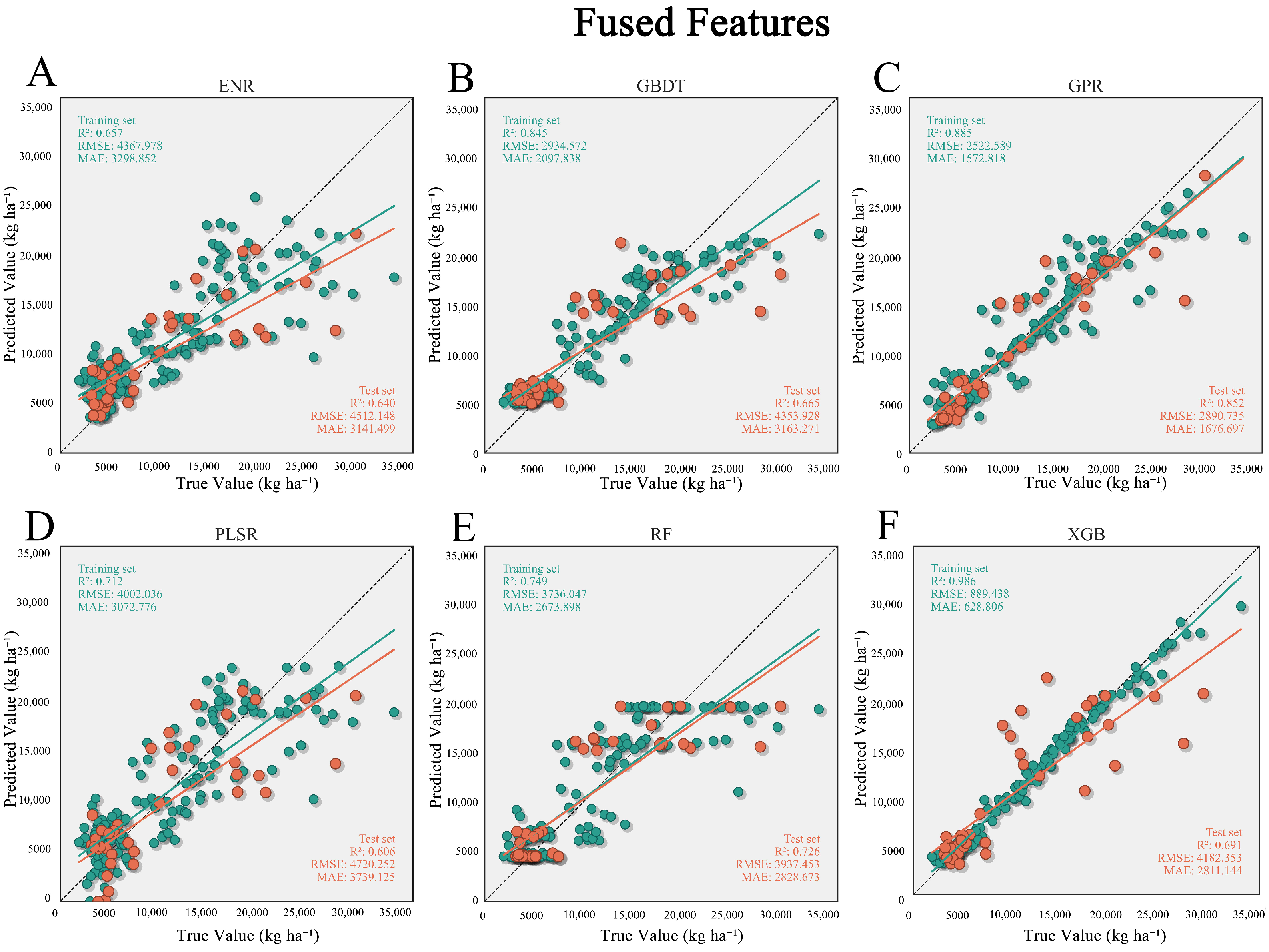 | R2 | RMSE (kg ha−1) | MAE (kg ha−1) | R2 | RMSE (kg ha−1) | MAE (kg ha−1) | ||